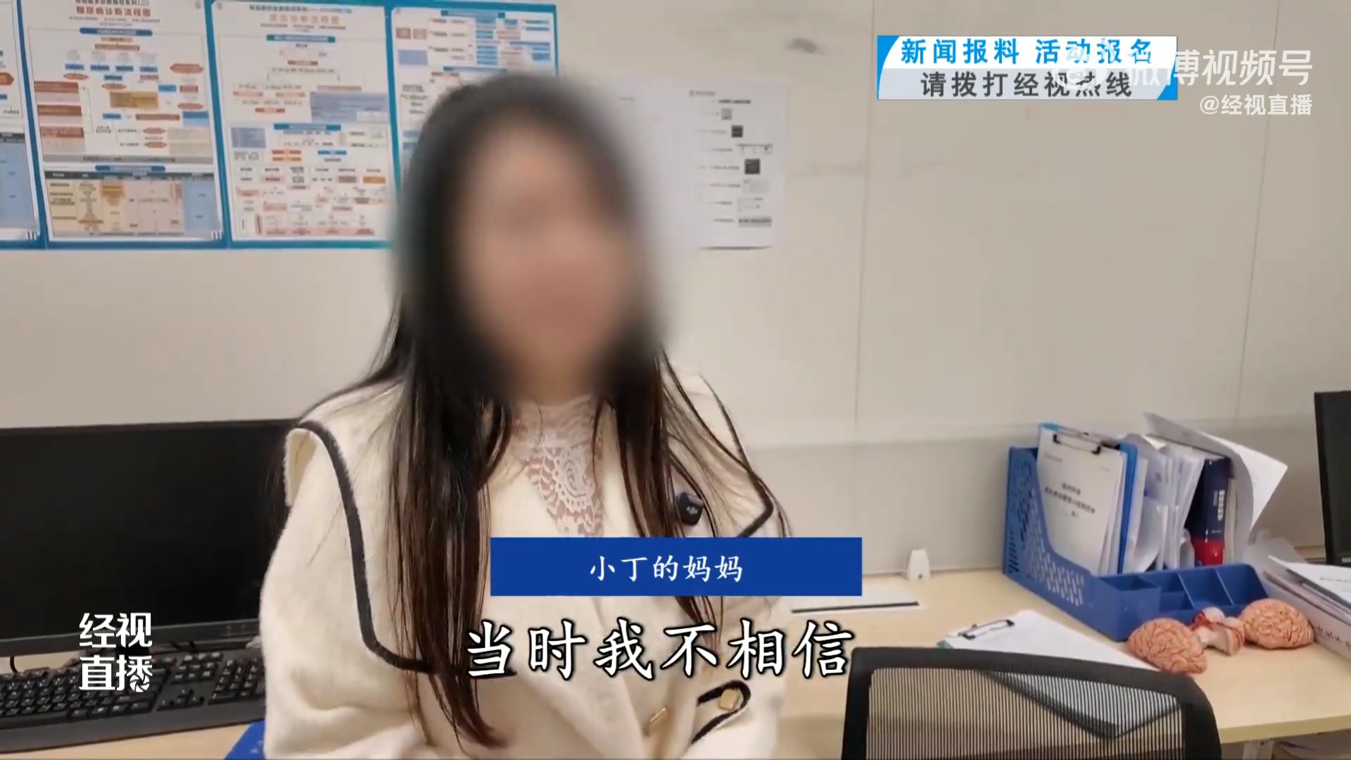 9 N. W0 a- r! e3 \7 M0 z! E4 O1 g小丁母親接到交警來電稱兒子遇上嚴重車禍,但她誤以為詐騙。(影片截圖)5.39.217.76% i" [5 ?+ z M" L8 o) {