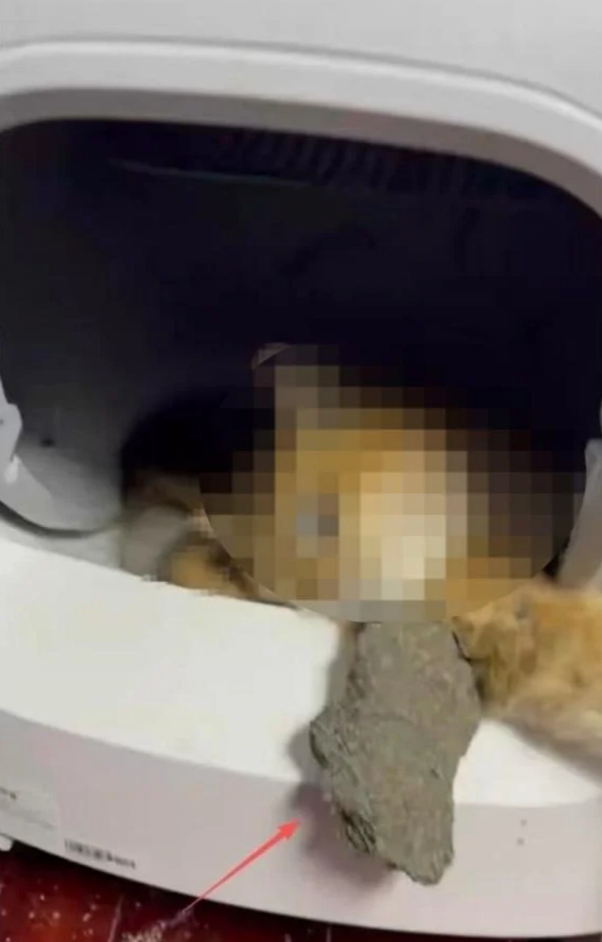 該網民稱,3月15日晚9時許她回到家,發現家里的寵物貓「元寶」下半身被卡在自動貓砂盆的集便盒里,身上有一道明顯的勒痕,渾身僵硬已死亡。