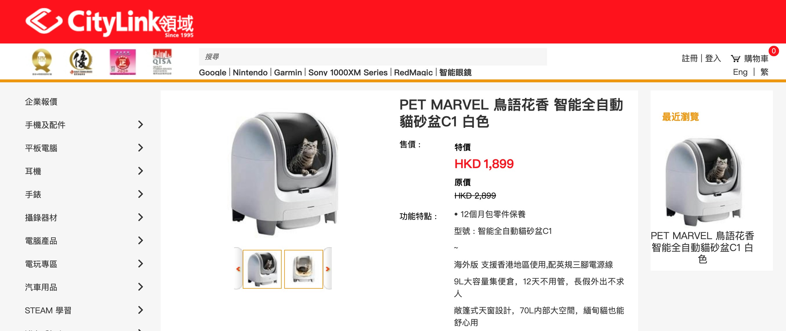 涉事貓砂盆在香港網購平台亦有售賣。