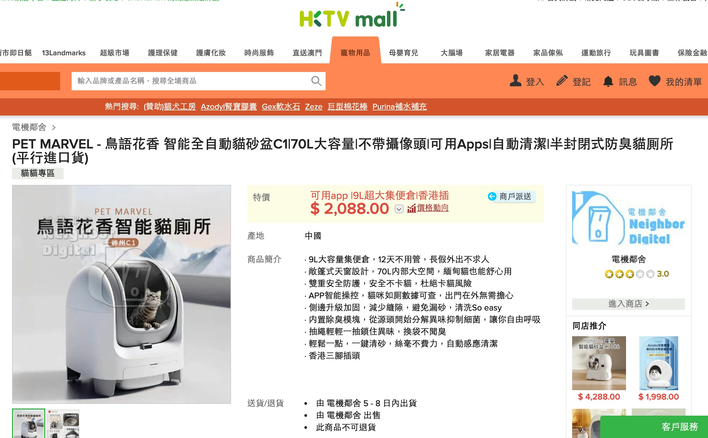 售賣這款貓砂盆的網店。