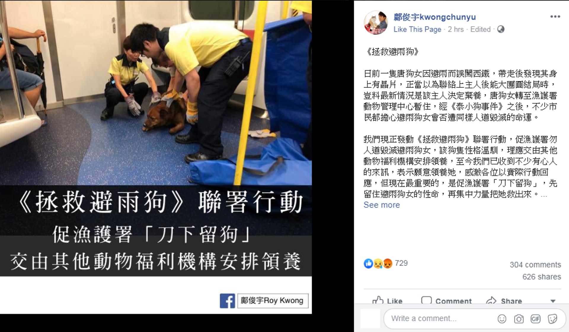 其實個狗主都好有問題,點會人哋叫你拎番隻失狗但狗主話好遠要求送去近佢度嘅地點先拎番隻狗,唔見咗隻狗天腳底都即飛撲去接番佢啦!罷明喺想遺棄.....隻狗好慘有個咁嘅主人,唉~~ ...