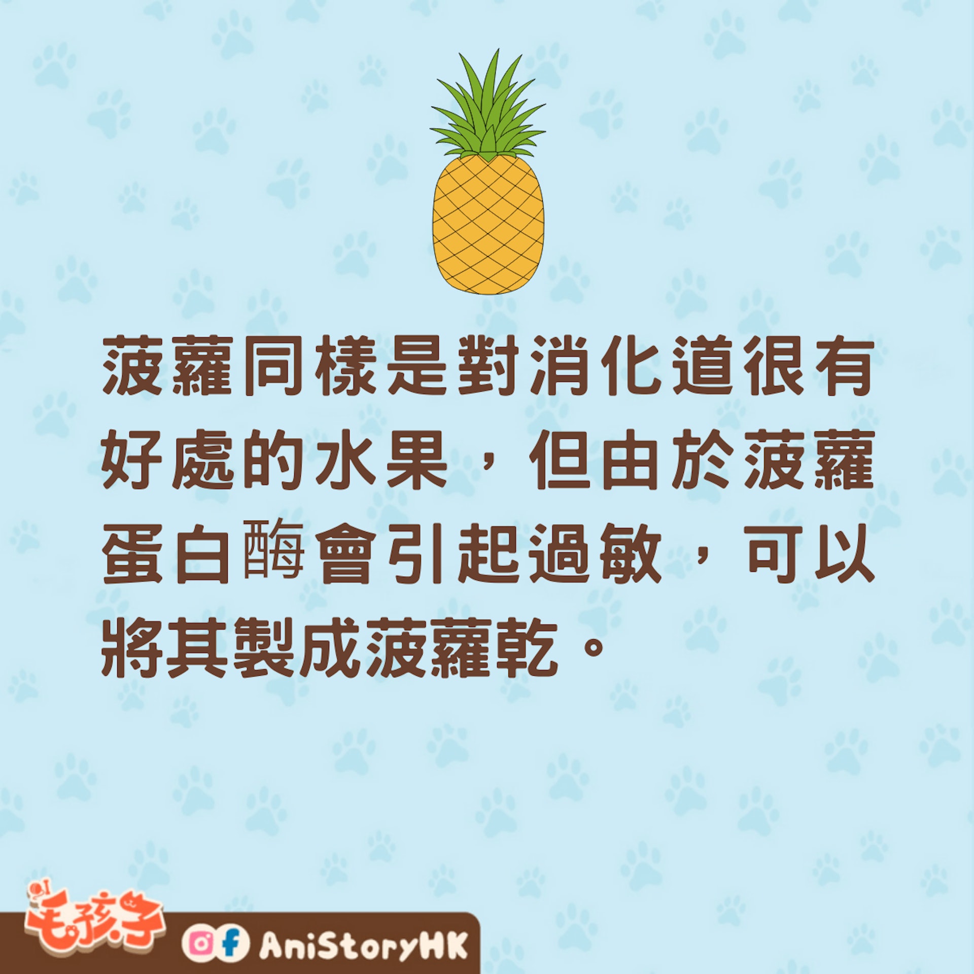 菠蘿同樣是對消化道很有好處的水果,但由於菠蘿蛋白酶會引起過敏,可以將其製成菠蘿乾。
