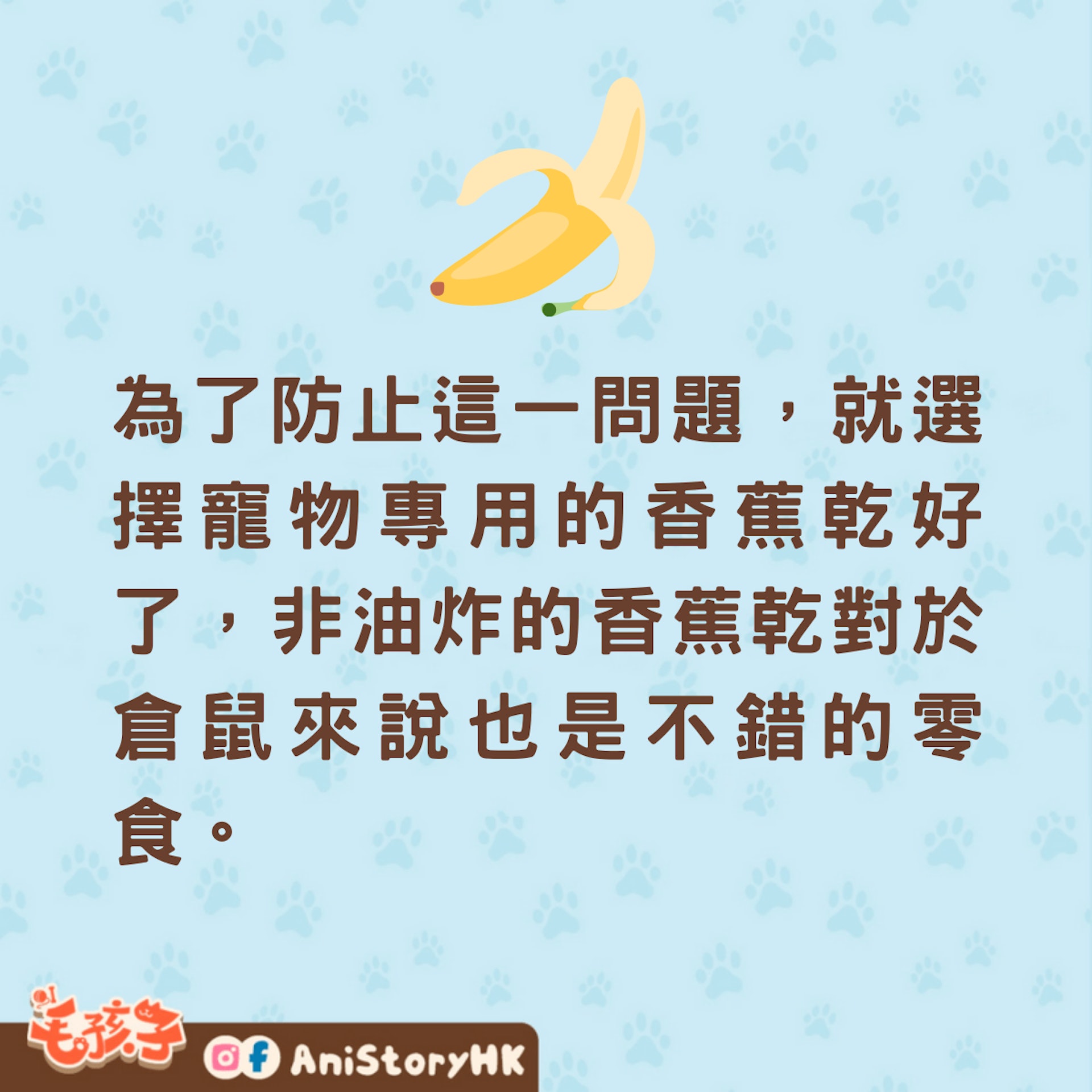 香蕉,要防止香蕉被藏在頰囊裏引起腐敗和炎症。為了防止這一問題,就選擇寵物專用的香蕉乾好了,非油炸的香蕉乾對於倉鼠來說也是不錯的零食。
