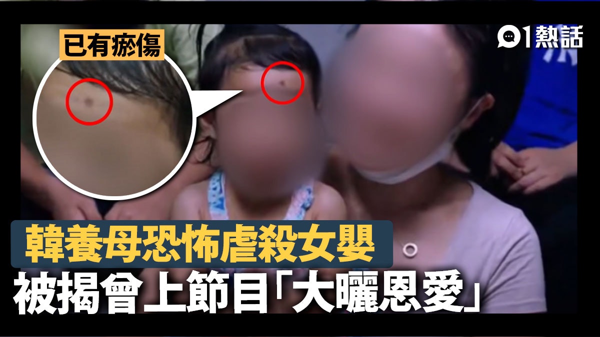 7 N3 }% [. H7 i% }9 Q X* U) t韓國發生一宗虐死女嬰案,恐怖的是涉案養母曾經在節目中和女嬰大曬恩愛。韓媒報道,33歲的養母疑多次虐打只有16個月大的女嬰導致其慘死,被控虐兒及謀殺,驗屍發現女嬰腸臟、胰臟重創、多處骨折,肋骨更有骨折後自然癒合痕迹,顯示絕非首次受創,警方稱女嬰屍體「很難找到完好的器官」。涉事養母更被揭曾和女嬰上節目扮恩愛及已3次被舉報虐兒等,而案情細節,更令韓國民眾感到心寒。 E; `( q9 m" {' E- e5 Y