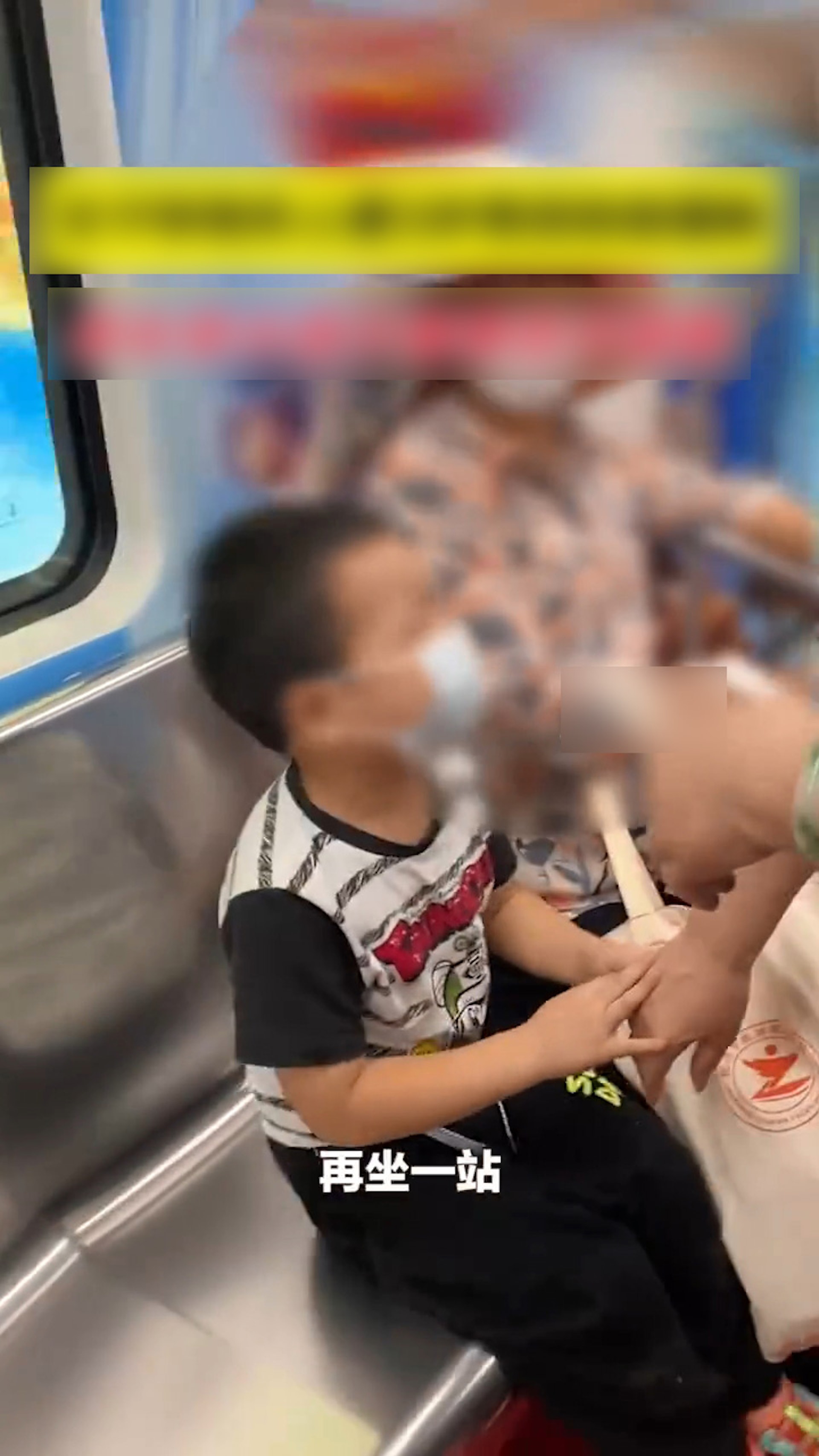 8 h5 s4 d$ d0 {, _# y杭州地鐵發生3歲男童「搶位」事件,有女乘客指男童坐大腿及摸胸強佔位置。(微博影片截圖)8 J9 d0 p1 ~# g5 u: E$ b