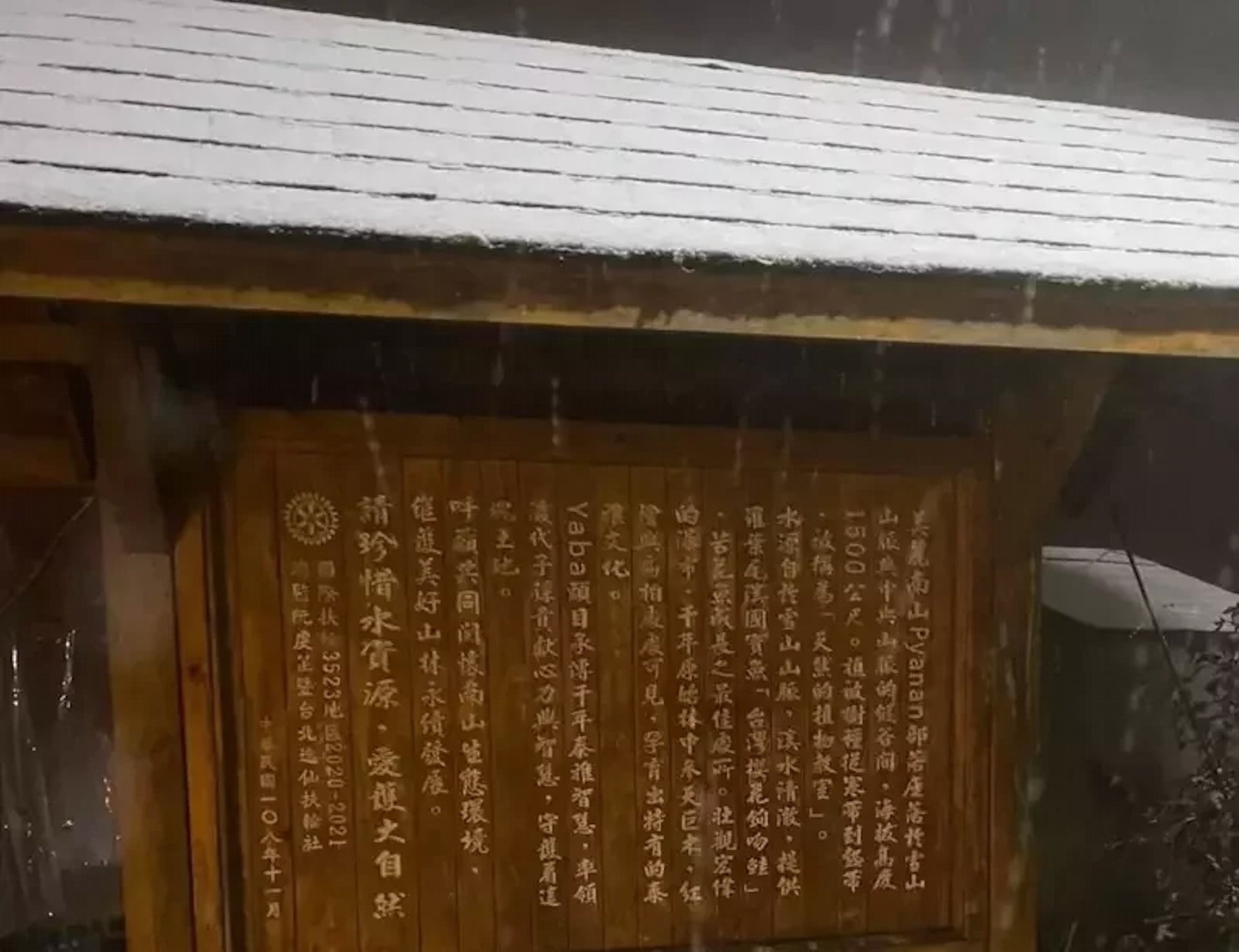 宜蘭南山部落飄下今年的第一場雪,目前部分山區仍持續降雪。(Facebook截圖 / @亞爸的山)