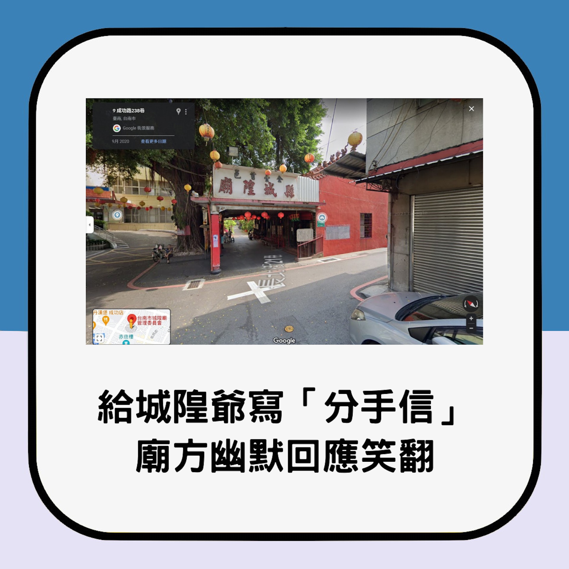 信徒改信上帝,城隍爺被收分手信。(facebook@全台首邑縣城隍廟)