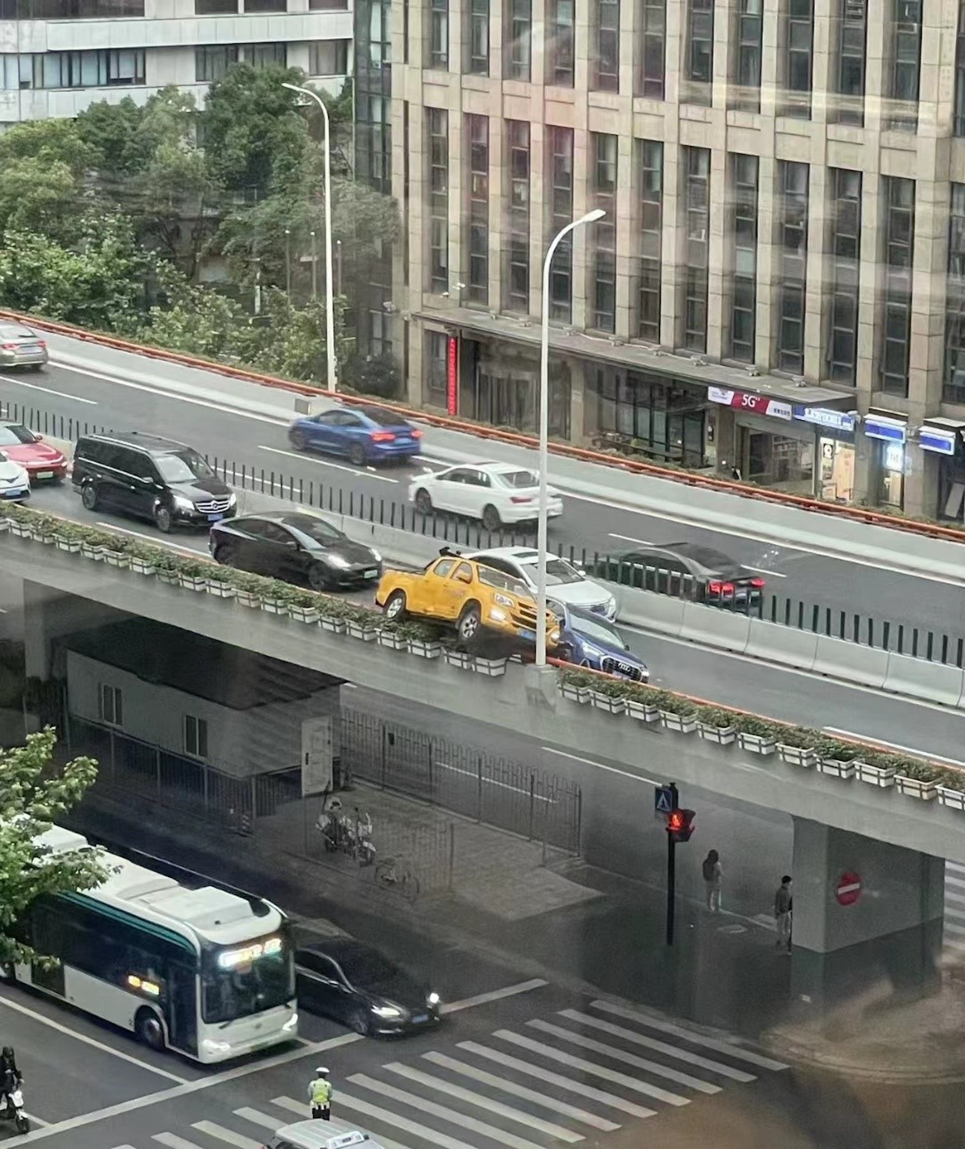 % `2 r" z5 z& T上海高價天橋出現史詩級撞車,畫面極驚險。(圖 / 微博)公仔箱論壇7 T- c* e+ @ p! M