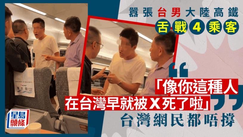 影音社交平台TikTok近日廣傳一段影片,當中一名操著台灣口音的男子在大陸高鐵上,與其他人發生口角。其中白T恤男叫囂「像你這種人在台灣早就被X死了啦」,自爆自己是台灣人。男子被質疑後情緒激動:「台灣的怎麼了?台灣的怎麼了」。影片曝光後被轉至台灣知名討論區Dcard後,網民紛紛大表無奈,怒批該台男「太丟台灣的臉」,不過TikTok的網民卻疑似講反話表示「帥翻了啦」。