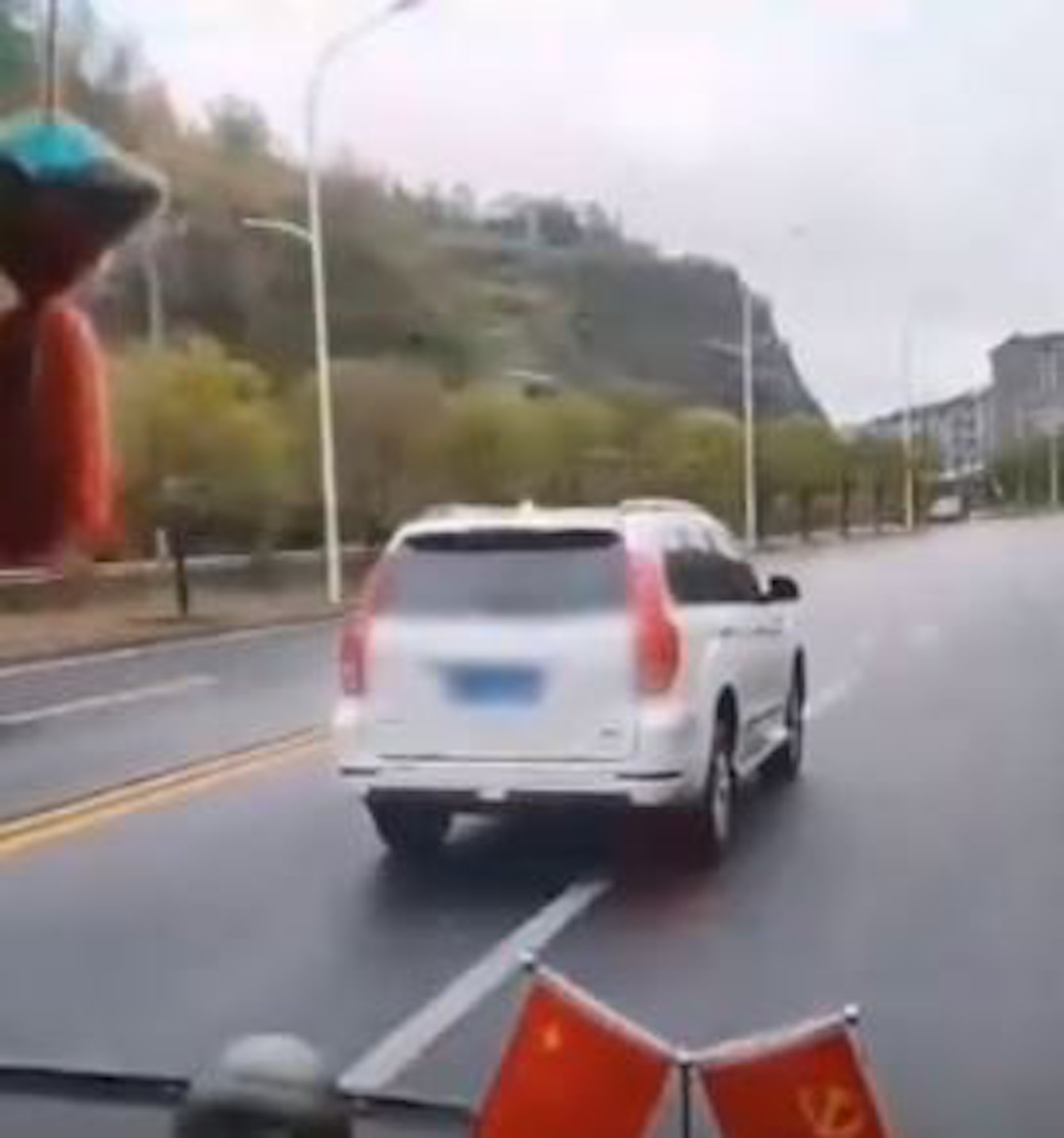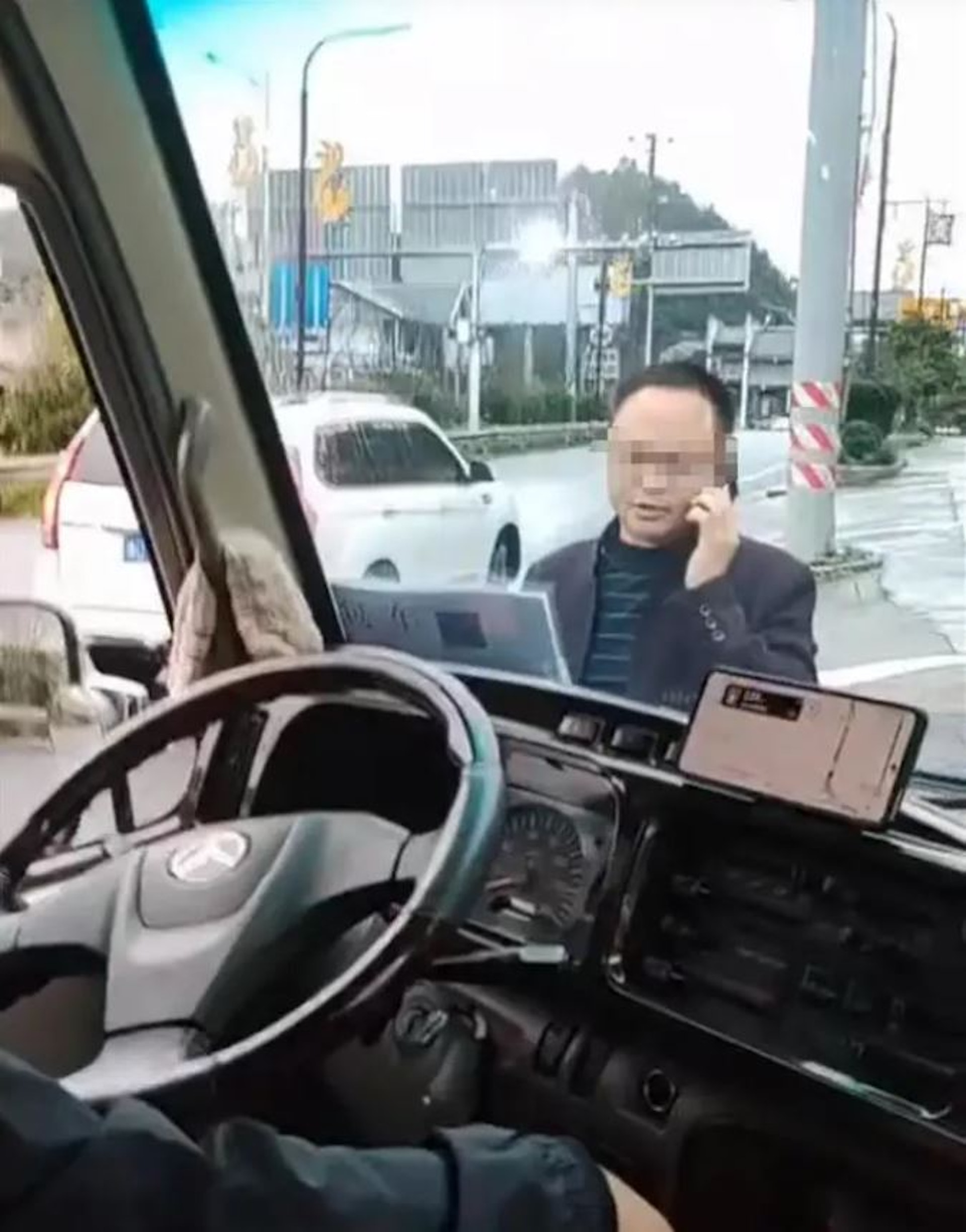 ! I# k# H8 Z1 i# ^+ r公仔箱論壇影片顯示,旅遊巴多次被一架掛著當地車牌的私家車阻礙前行,更被強行逼停。(影片截圖)* t) b& G/ c5 ]0 `+ f, {6 D