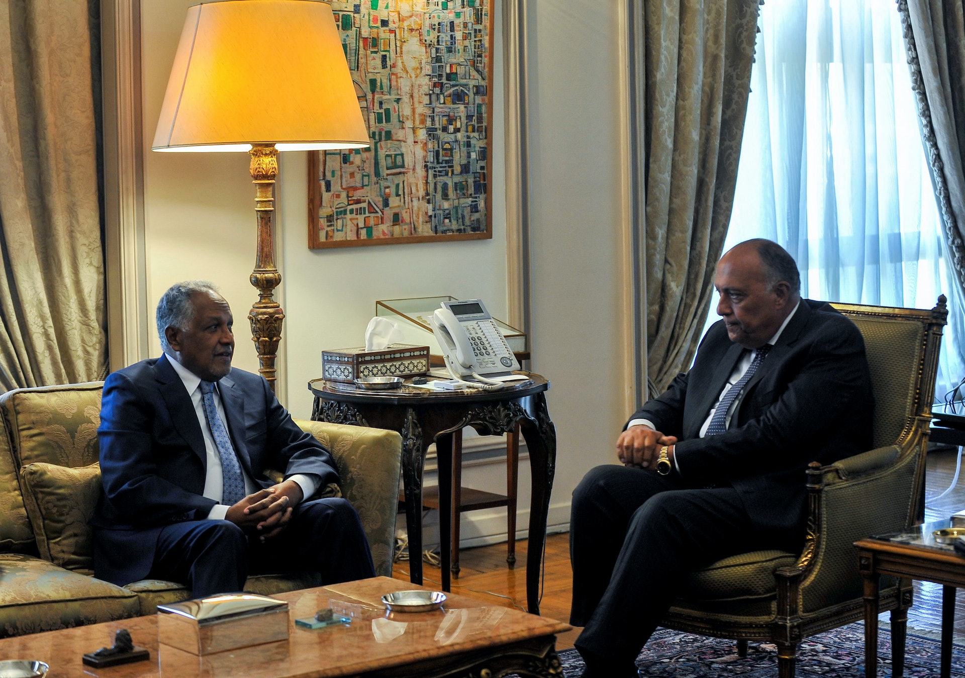 $ _$ z. \7 y$ e$ D* T9 @! |公仔箱論壇蘇丹內戰:埃及外長舒凱里(Sameh Shoukry)2023年5月2日在埃及開羅與蘇丹政府軍的武裝部隊總司令布爾漢(Abdel Fattah Abdelrahman al-Burhan)特使會談。(Reuters)5.39.217.76! T P0 j0 w5 b1 f
