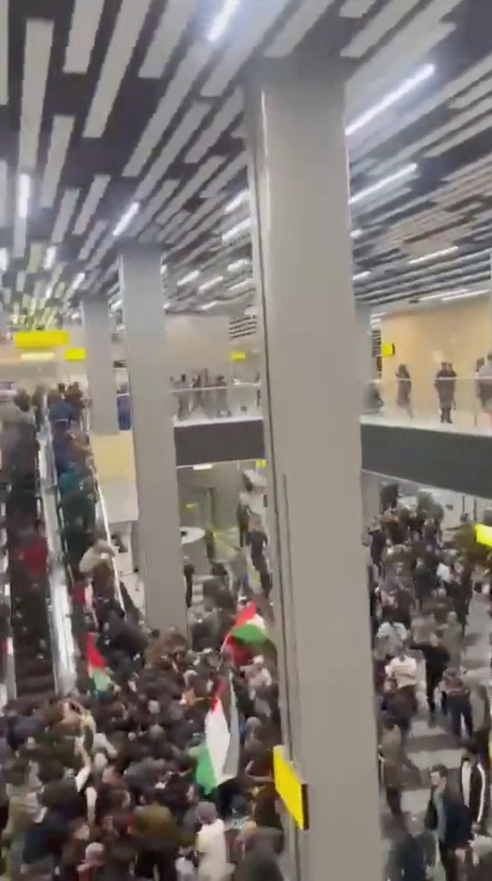 以巴戰爭2023年10月7日起爆發後,揮舞巴勒斯坦旗幟的暴徒10月29日衝破玻璃門,硬闖馬哈奇卡拉機場,尋找乘特拉維夫航班抵達的以色列人和猶太人。公仔箱論壇: Z1 L; n4 A) m4 f