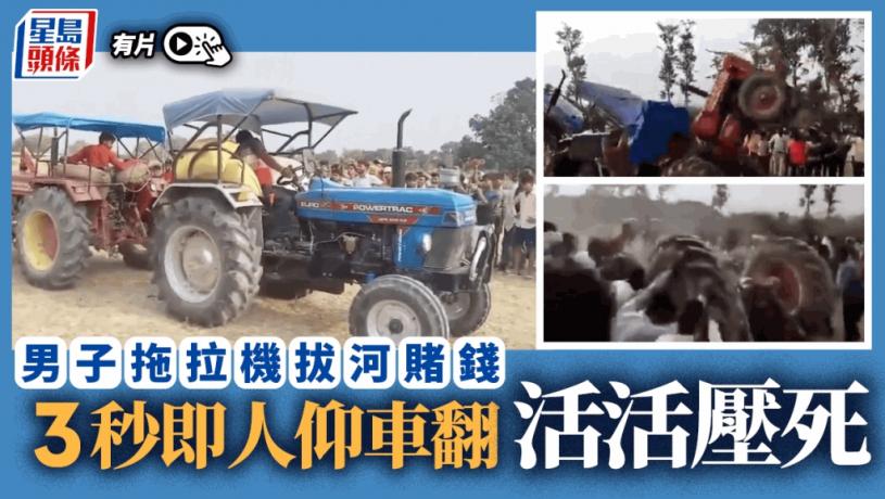 事件發生在印度北方邦,22歲男子拉魯(Lalu)22日與另一男子打賭,看誰的拖拉機動力更強大,勝出者可獲得1.5萬盧比獎金,旁邊的拖拉機司機們亦可下注,成了一場既賭錢又賭命的刺激遊戲。tvb now,tvbnow,bttvb" ?1 b7 k5 `2 ^% z, z! T6 A