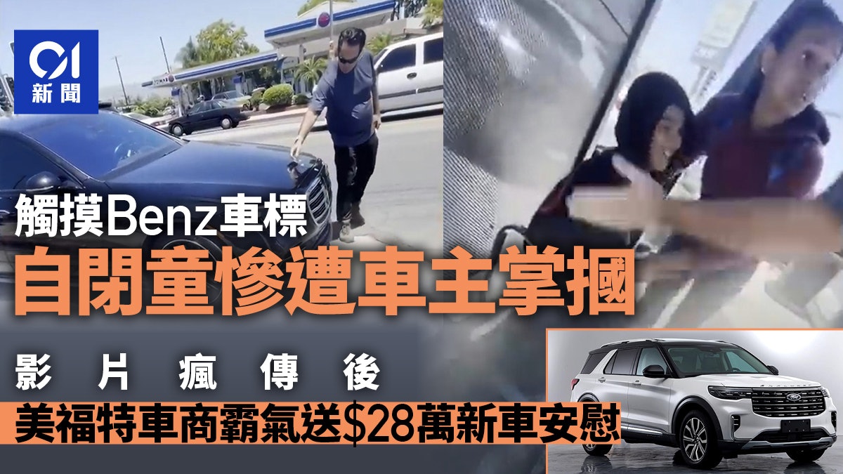 9 i% e) |* W6 r; w+ W* U7 @' E公仔箱論壇加州一名自閉症男童觸摸平治(Mercedes-Benz,另譯賓士)車的車標,沒想到車主下車後竟怒搧男童巴掌。tvb now,tvbnow,bttvb' _) q! }( c% P1 ]0 K7 B W