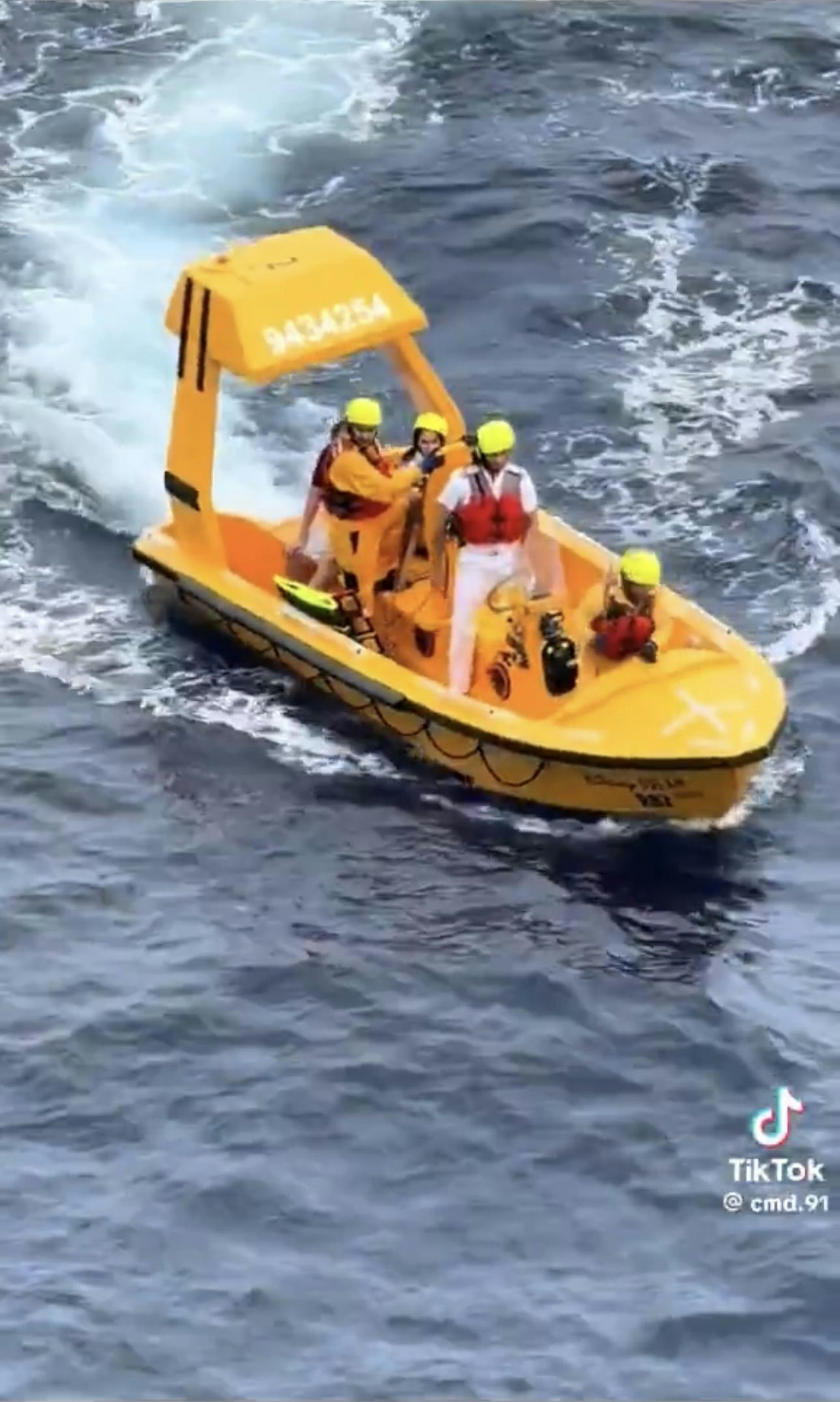 " Q2 e4 \% C, N8 F% ?( ]tvb now,tvbnow,bttvb「迪士尼夢想號」郵輪6月29日發生乘客墮海事件,船員出動救生艇到場拯救。(x.@Jimni38 截圖)