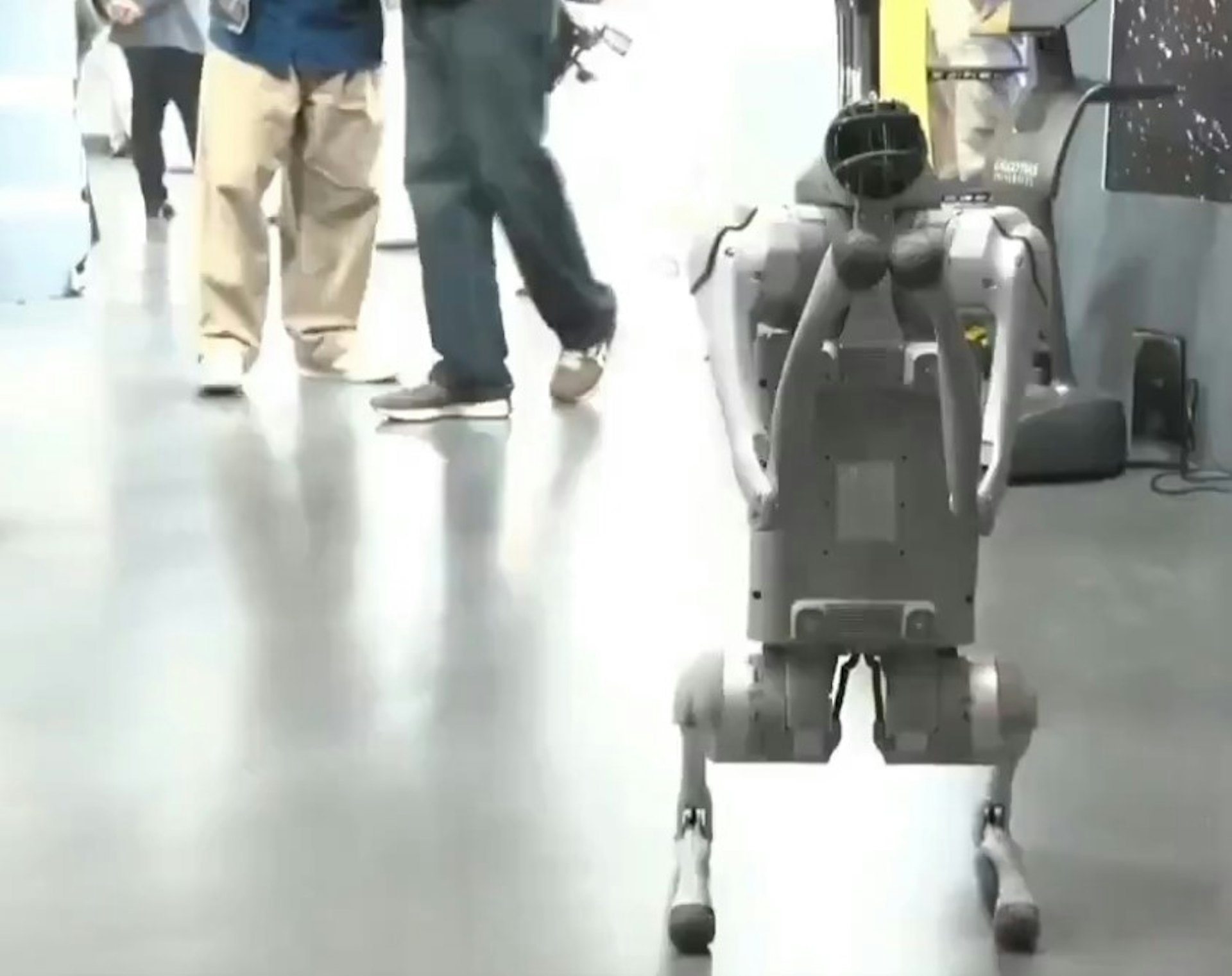 $ ], A$ X. n$ g( U印度加爾戈蒂亞斯大學(Galgotias University)2026年2月在印度AI影響力峰會展場展示的機械狗(影片截圖)$ V( r+ a2 \* U* x