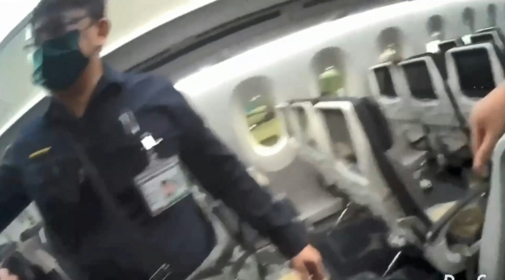 % X7 e& J; q: }2 M- ?2 H9 W8 U+ O有民眾表示,3日一架從倫敦往台灣的華航班機上,一名外籍男遊客不斷吵鬧、辱罵乘客、騷擾機組人員,甚至拍打空姐臀部、親吻空姐手背等,後來還公然抽起電子煙,班機降落後被警方帶走。(Threads影片截圖)