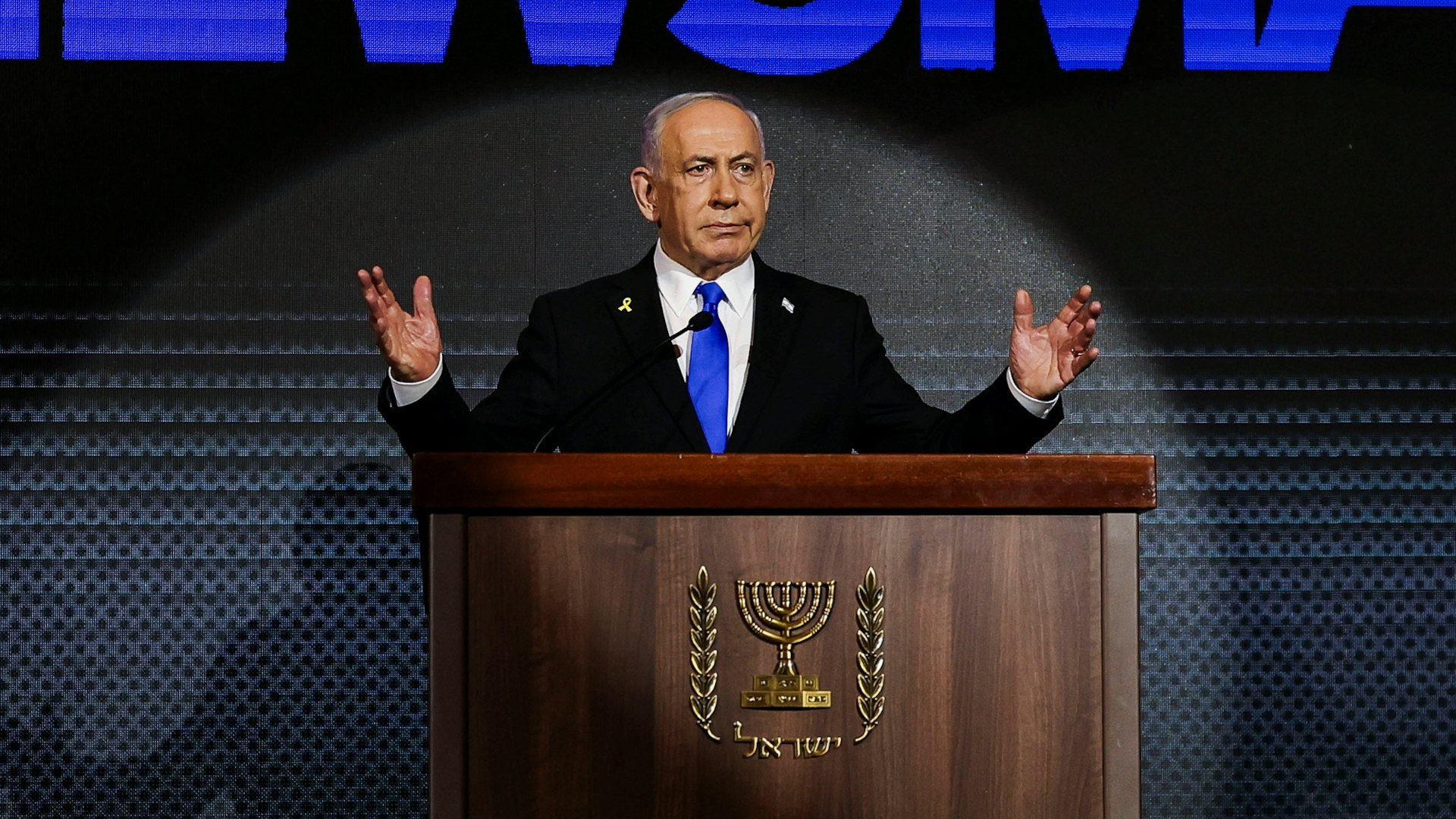 / w! p& v, C' B# ^- [2025年8月13日,以色列總理內塔尼亞胡(Benjamin Netanyahu)在耶路撒冷出席Newsmax電視台舉辦的活動。(Reuters)tvb now,tvbnow,bttvb* P+ R" [" @5 V. A# ~0 T- M
