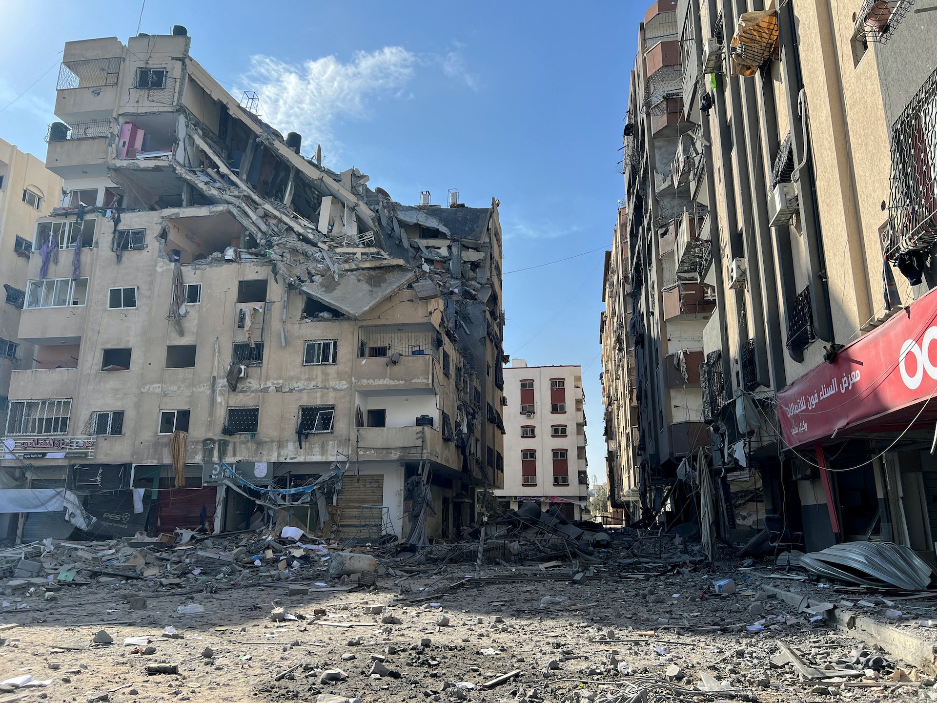 以巴衝突:2023年10月29日,加沙地帶南部遭受空襲後的情況(Reuters)