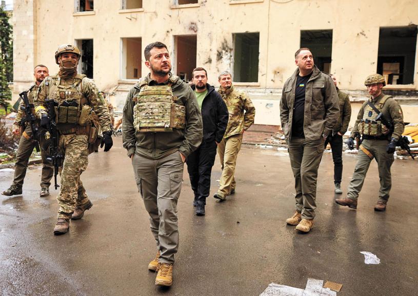 俄烏戰事爆發三個月後,烏克蘭總統澤連斯基首次離開首都基輔,前往第二大城市哈爾科夫的烏軍前線陣地慰問軍人。美聯社俄烏戰事爆發三個月後,烏克蘭總統澤連斯基首次離開首都基輔,前往第二大城市哈爾科夫的烏軍前線陣地慰問軍人。美聯社4 g: Y8 n$ n, D# B1 q! D; ^, U k