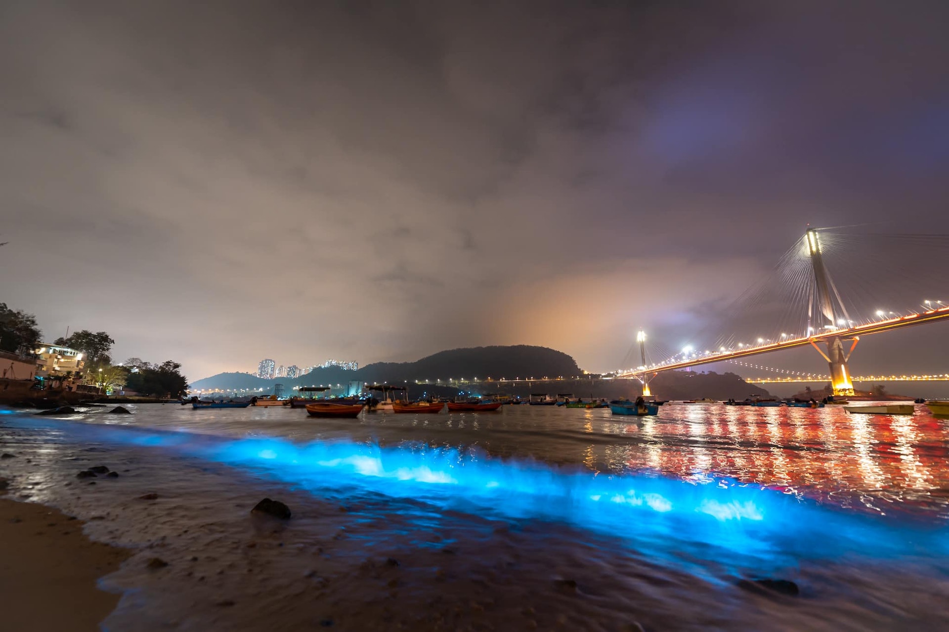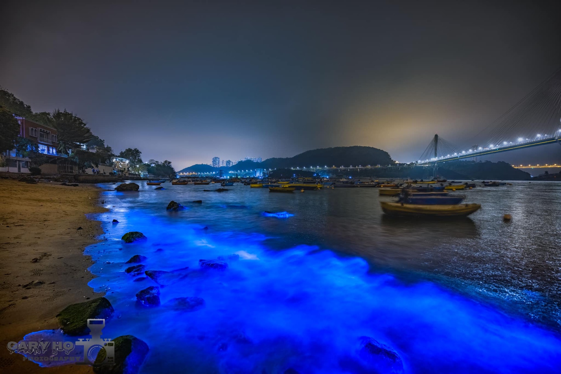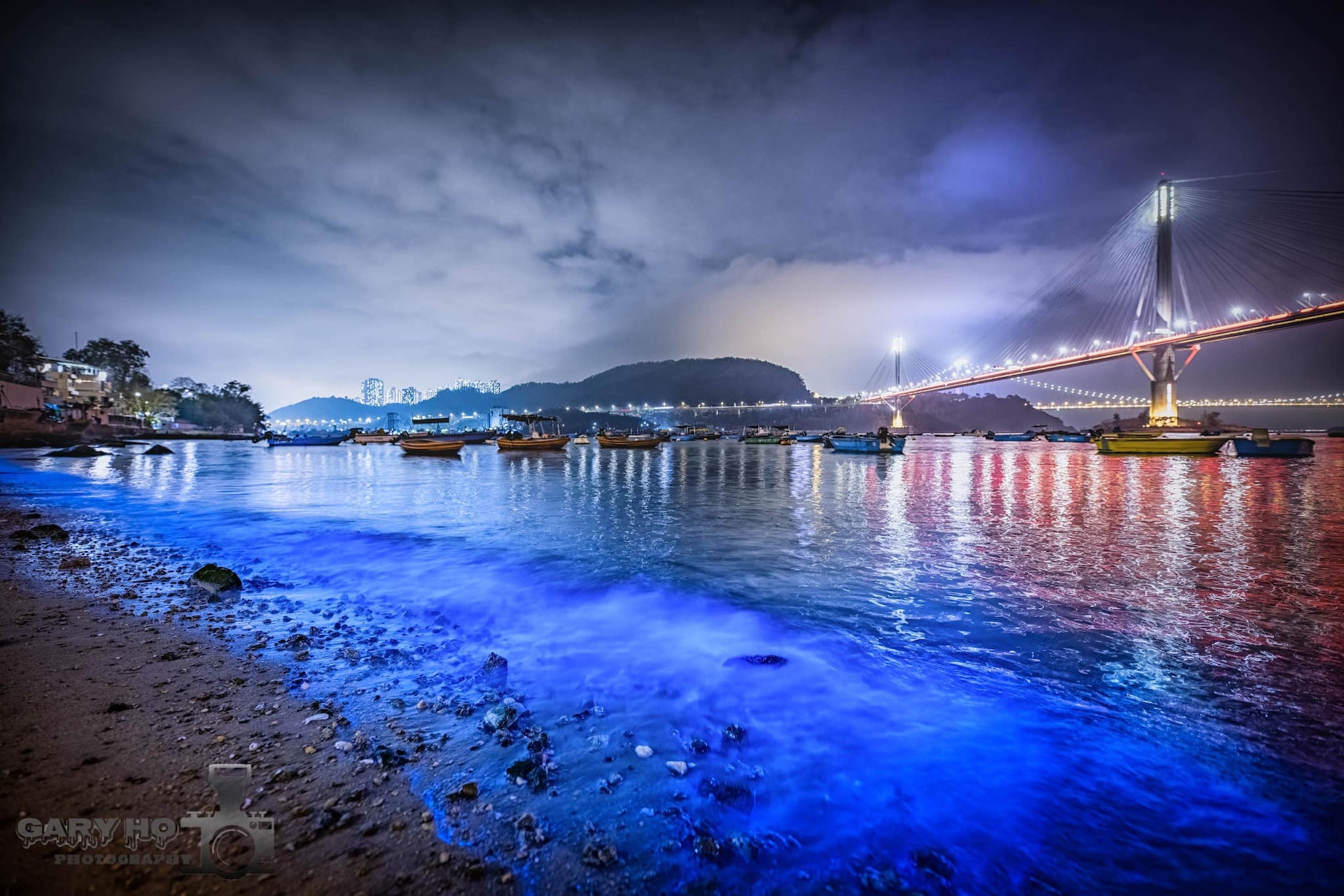 汀九泳灘再出現由紅潮夜光藻引起的「藍眼淚」,圖為在3月11日晚上早段拍攝。(Zenok Lee攝/Facebook專頁香港風景攝影會圖片) tvb now,tvbnow,bttvb3 u1 b# S) ^# l