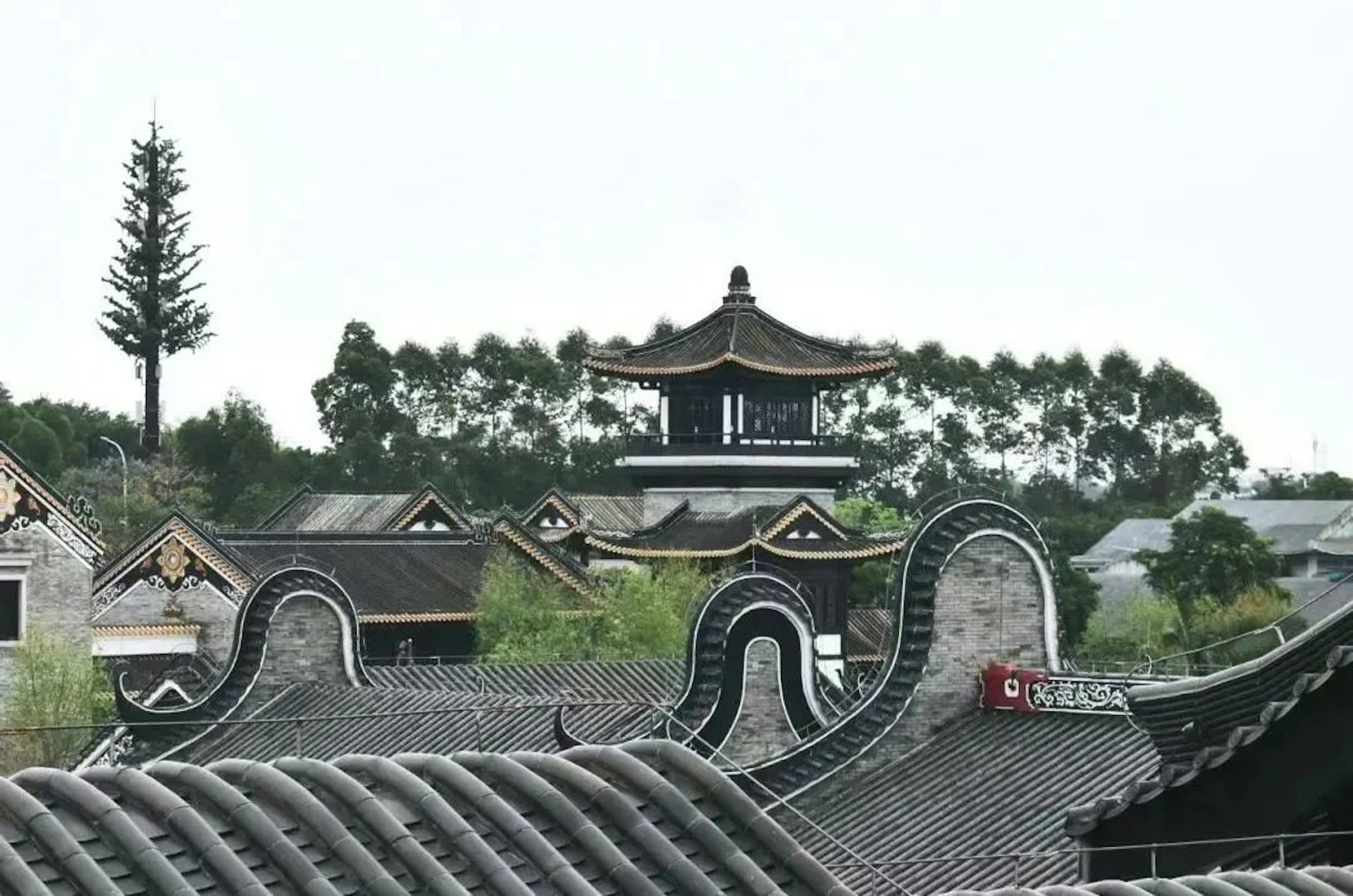 登上曲藝園可以眺望整個園區,近距離觀賞嶺南建築區。富有代表的鑊耳屋,外牆壁的花鳥圖案造工精細,清晰可見;水磨青磚屋盡顯貴氣,還原嶺南建築特色。0 `: v$ w6 e$ C9 g: U) W
