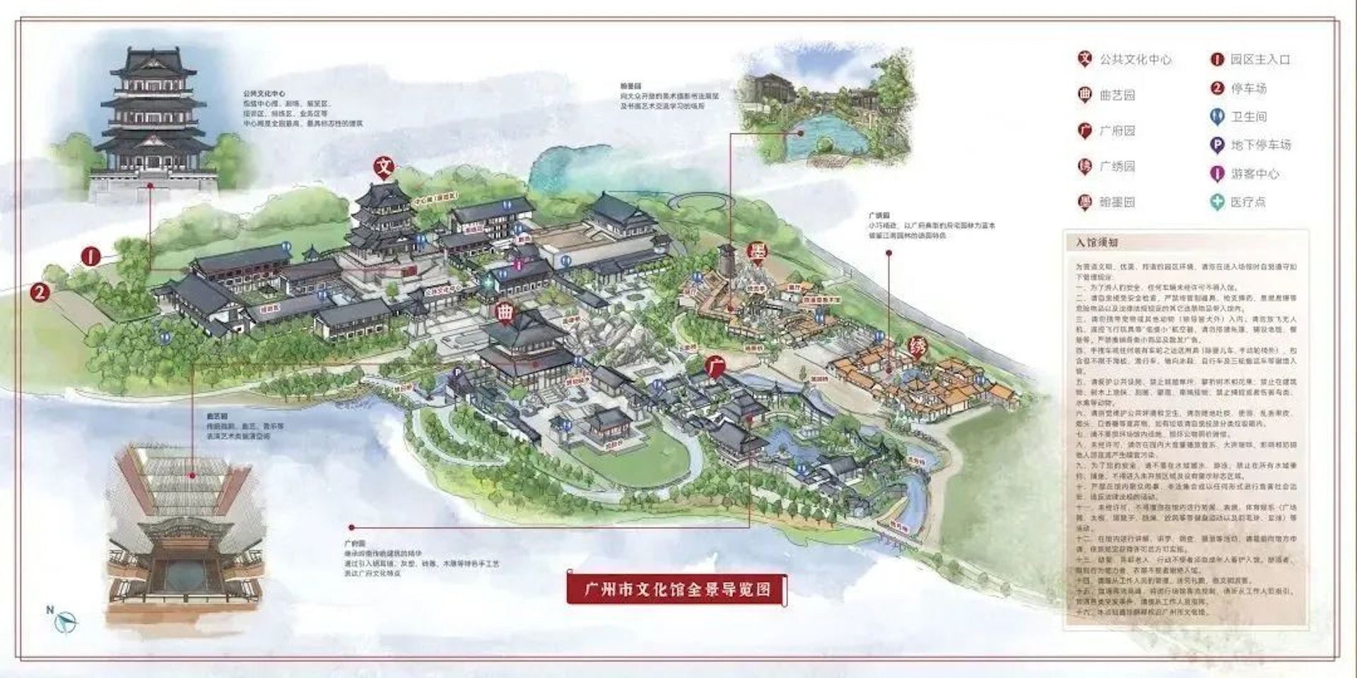 廣州市文化館以「十里紅雲一灣水,八橋畫舫十六亭」為主題,包含公共文化中心、翰墨園、曲藝園、廣府園、廣繡園等多組主題園林建築。如果你也是第一次去,一定要注意好時間,不然會逛不完哦~+2第一站:中心閣