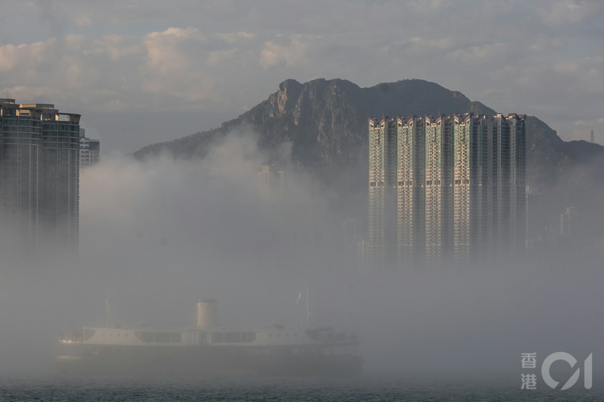 除了維港,南面的香港仔對出海面,同樣海霧瀰漫,一團團飄來飄去。+ Q- A. j, h4 f