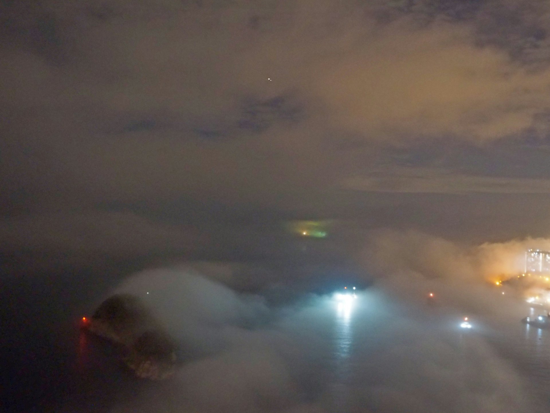 3月2日一場大海霧由下午延續至晚上,維港晚上濃霧,船上的燈光更迷離。(何瑞芬攝)5.39.217.76* W. E: J$ H4 |2 T7 X3 J& Q