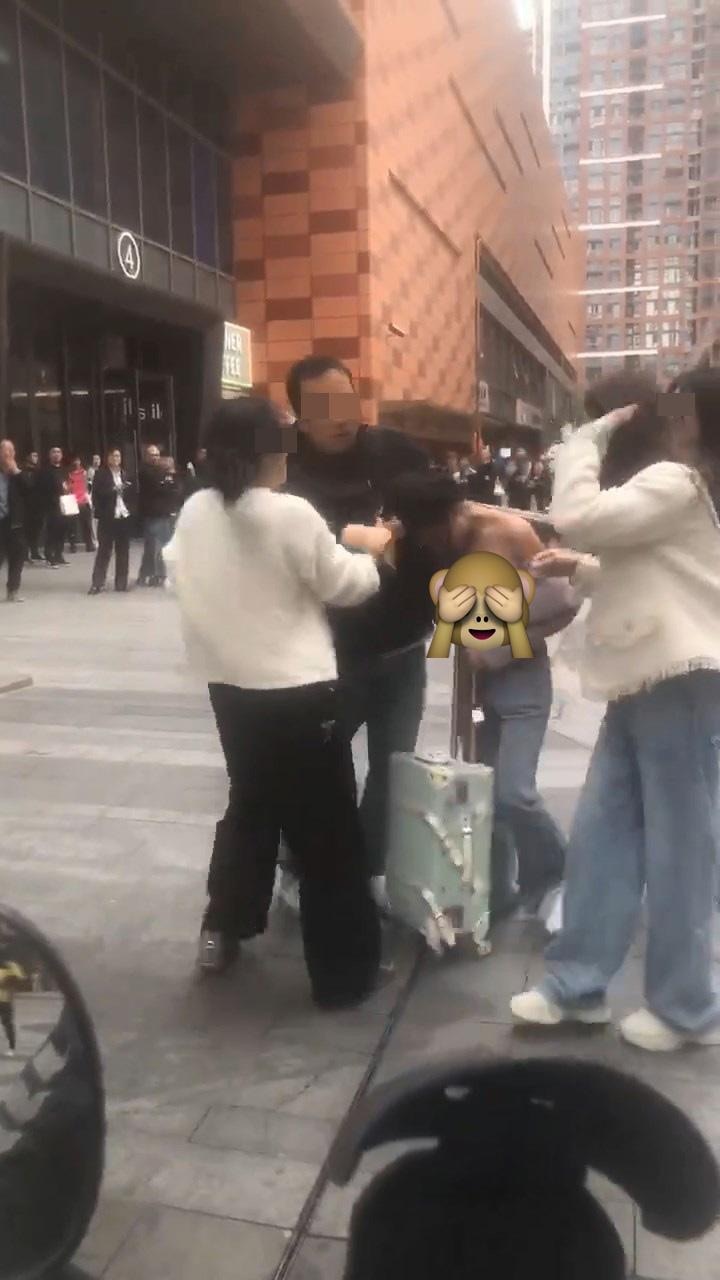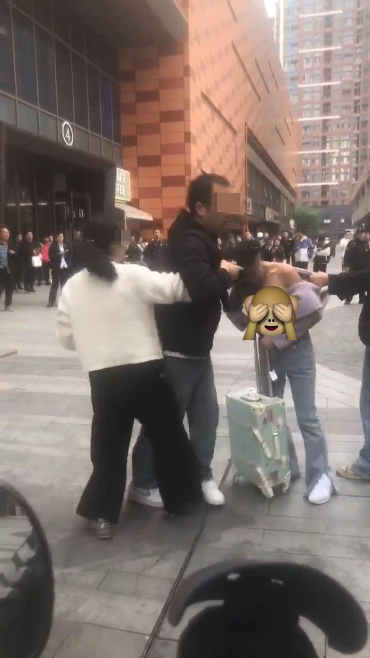 【捉姦/婚外情】內地瘋傳1段「正宮街頭暴打小三」影片,指江蘇有人妻與家人在鬧市街頭「捉姦」抓獲「小三」,其間一直拉扯「小三」頭髮和衣服,導致「小三」上身「走光」幾乎完全露出胸部,而出軌丈夫用身體抵擋,把「小三」抱在懷內保護。tvb now,tvbnow,bttvb7 z2 t x( Z2 o5 X