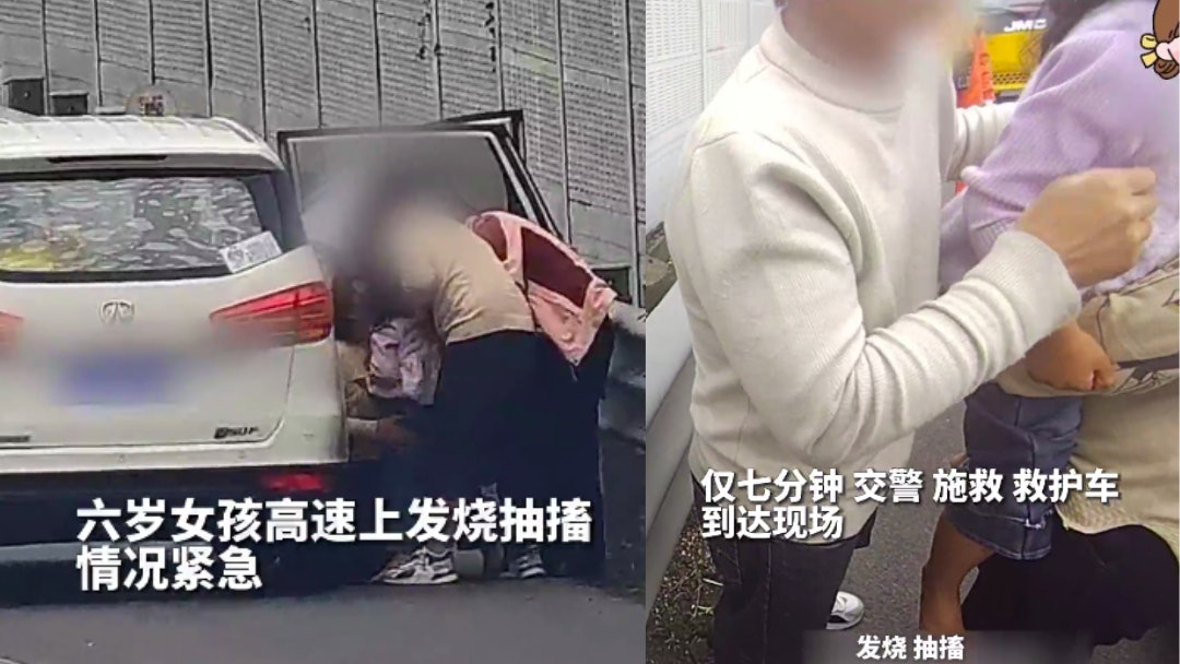 近日,內地申嘉湖高速湖州方向,有一輛白色小客車停靠在硬路肩。幾個大人圍着一個小女孩又拍又搖,神情緊張。