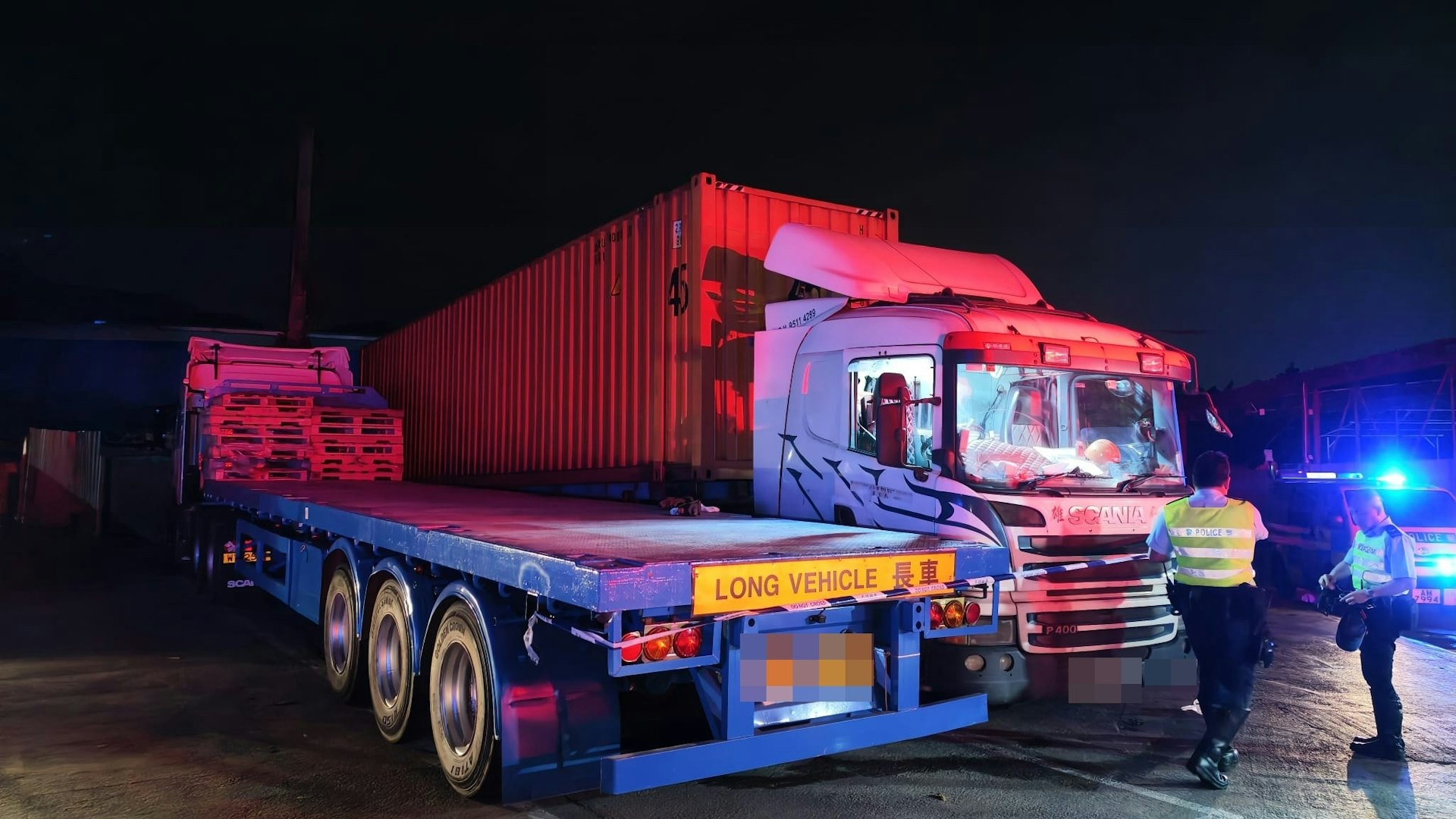 0 }+ }% A% C6 n" M- ]公仔箱論壇元朗發生嚴重車禍。周二(24日)晚上10時許,據報一輛貨櫃車在田廈路近舊李屋村一個物流貨場,司機疑落車「睇位」期間,突然與旁邊另一輛貨櫃車相撞。姓劉(76歲)男司機,被夾在自己的拖頭司機位的門、與旁邊貨櫃車的拖架之間,昏迷不醒。' I E- y* p6 w$ e. `) A