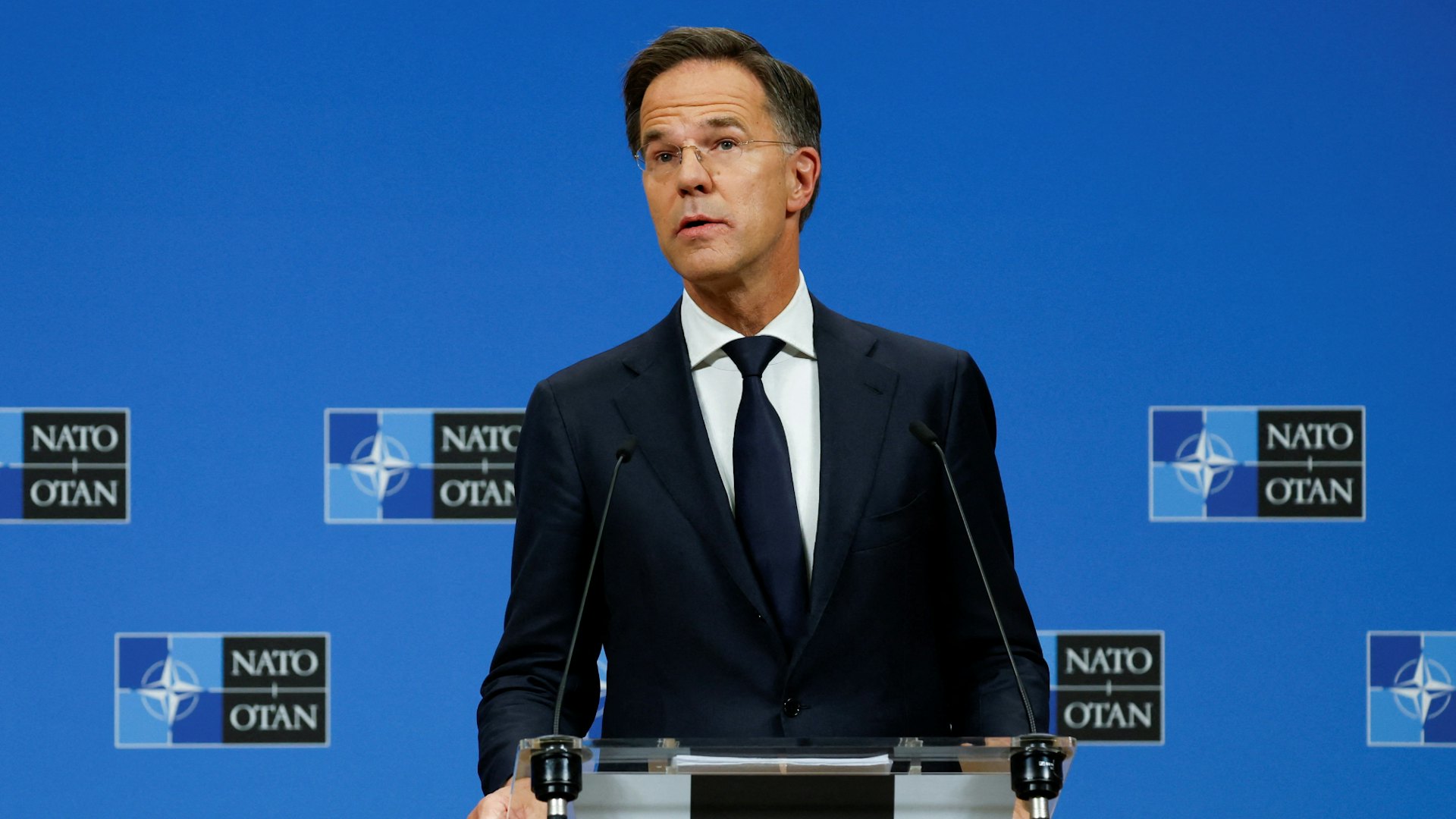 ' ^) ]) k v: S( W! h7 ~tvb now,tvbnow,bttvb2025年9月23日,北約秘書長呂特(Mark Rutte)在比利時布魯塞爾北約總部舉行的記者會上發表演說。(Reuters)