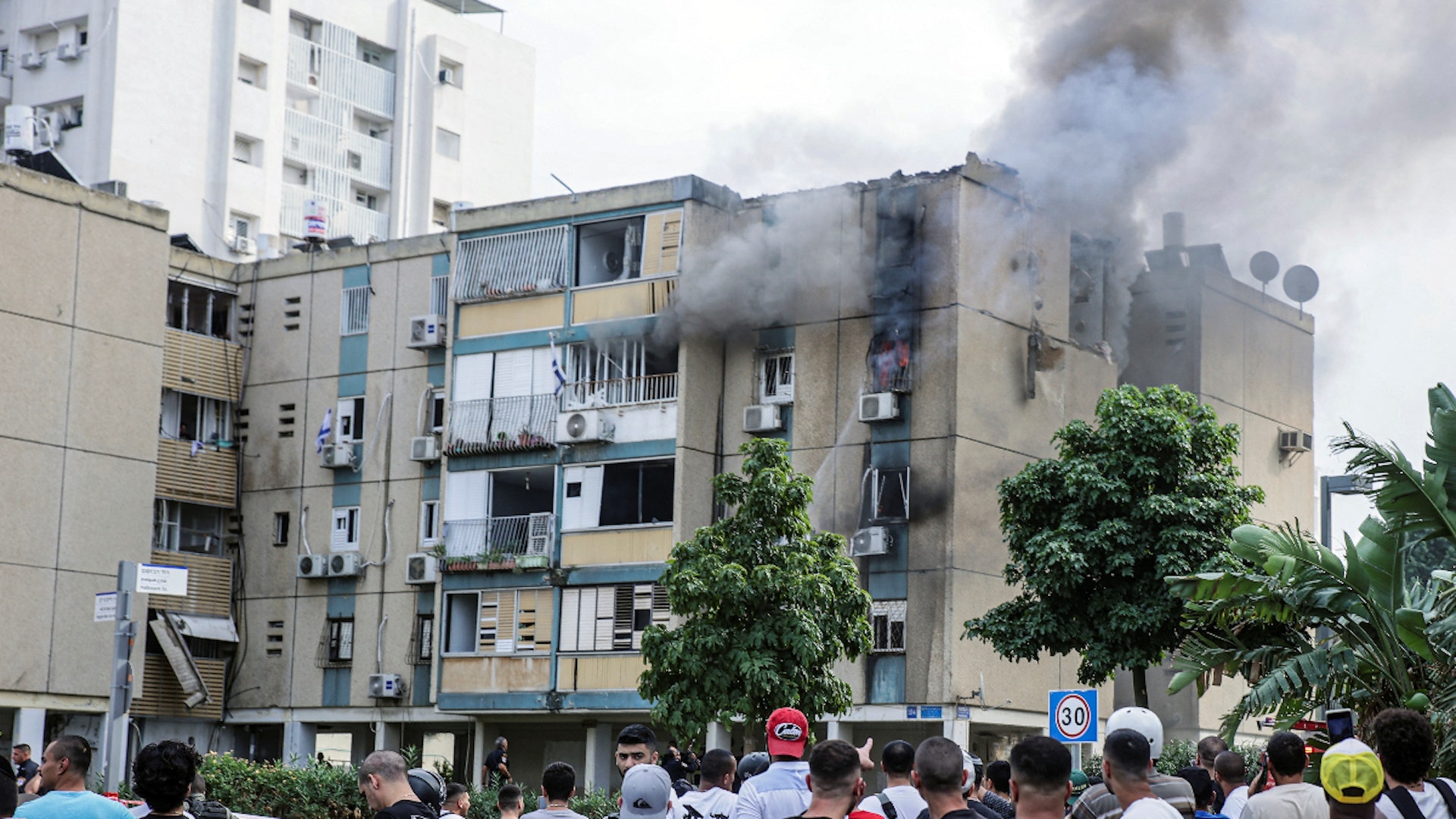 ( s+ i( Z3 W1 ?' r! b, e公仔箱論壇27日,以色列特拉維夫市內一座居民樓遭到炮彈衝擊,冒出濃煙。(Reuters)