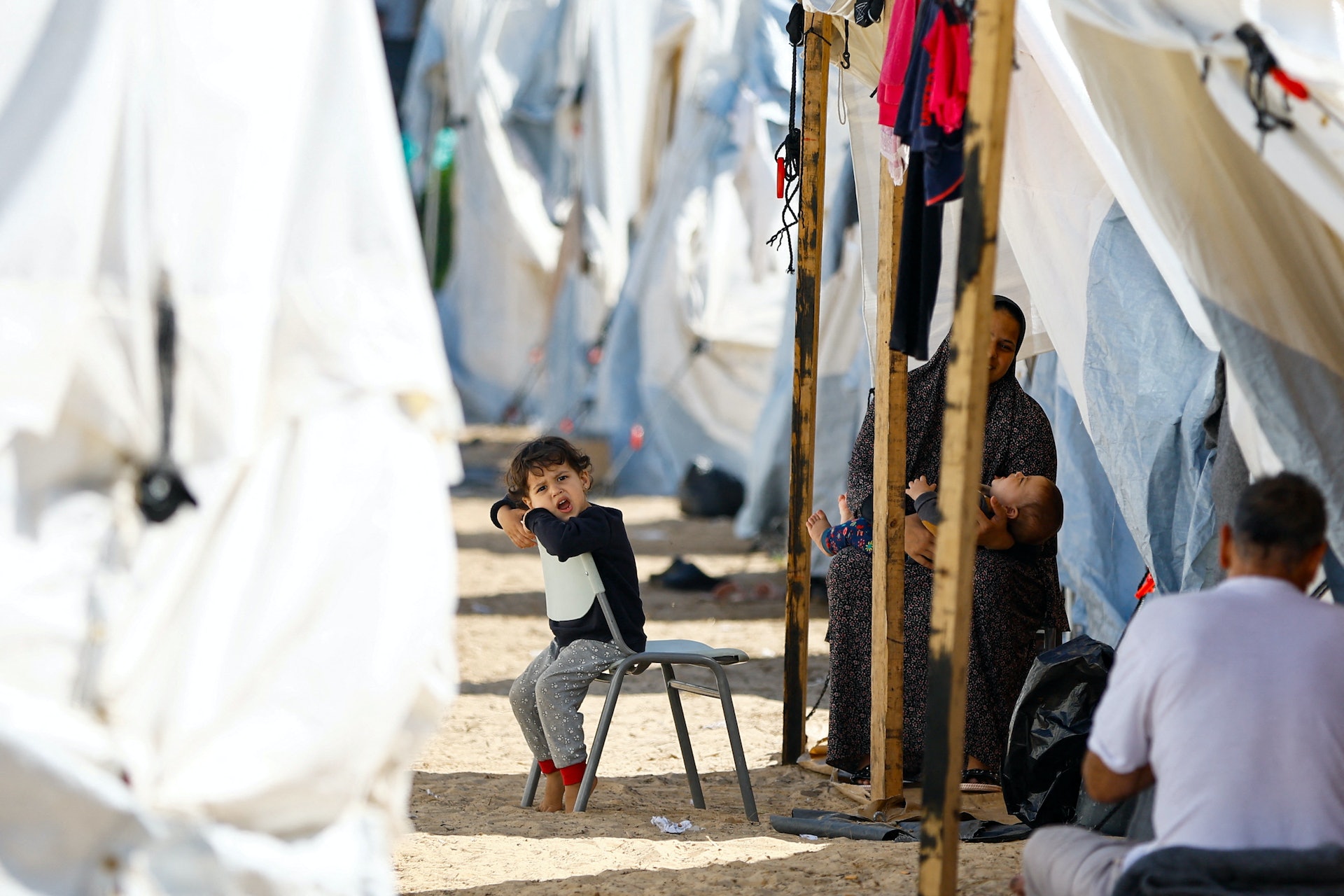 & K) { g' A$ }7 Y' m- a公仔箱論壇以巴衝突一再升級,流離失所的居民到加沙地帶南部、由聯合國營運的庇護營避開戰火,圖為2023年10月30日在營內的一名小童(Reuters)1 b; h0 n3 G* {1 e$ b