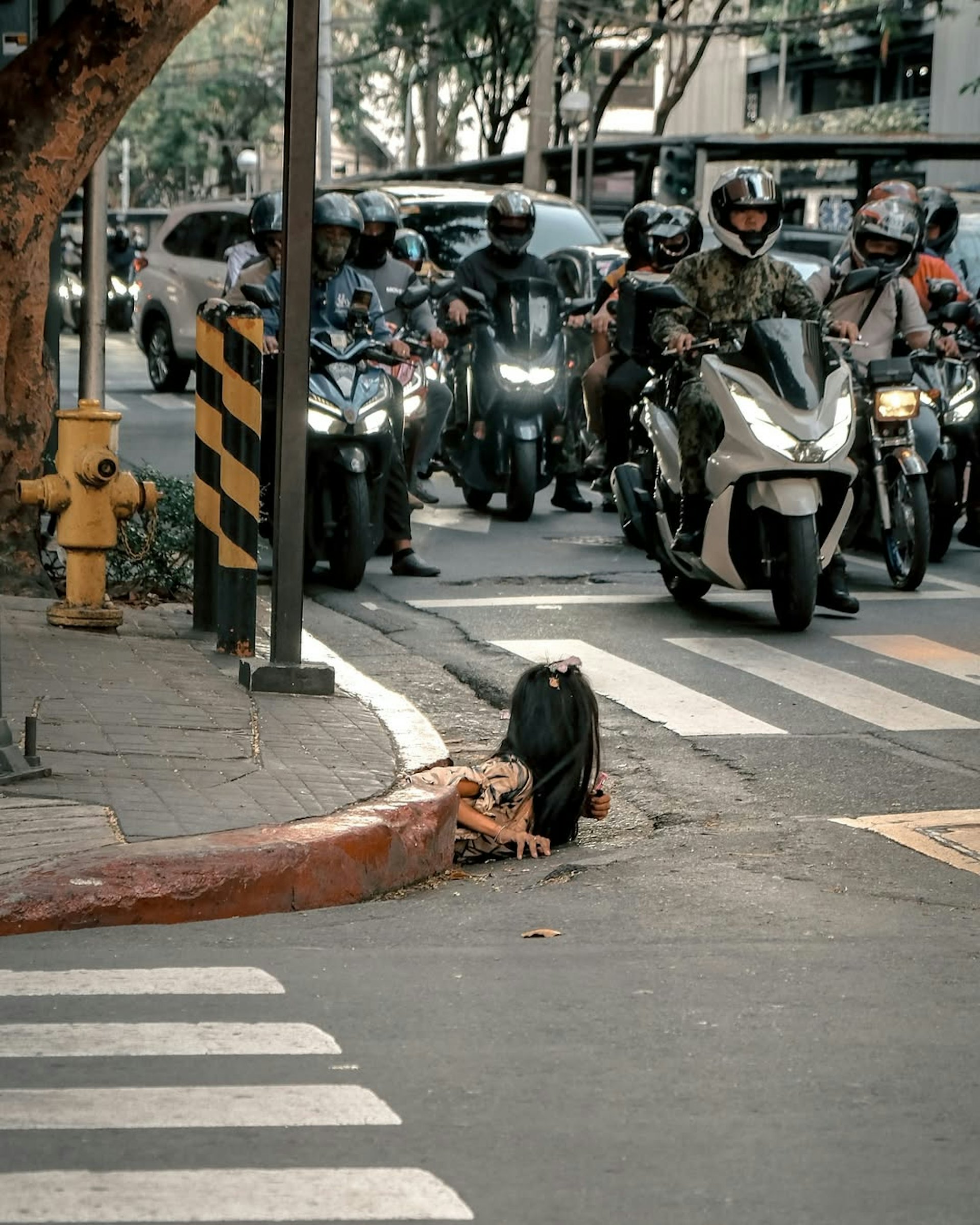 ! _: _' c7 {0 W- e3 N一名攝影師在菲律賓馬尼拉散步回家期間發現一名女子從下水道爬出來,這一幕簡直就像一部恐怖電影裏的場景。(Instagram@iammrthirty)% p7 e& u6 j. d9 {4 b