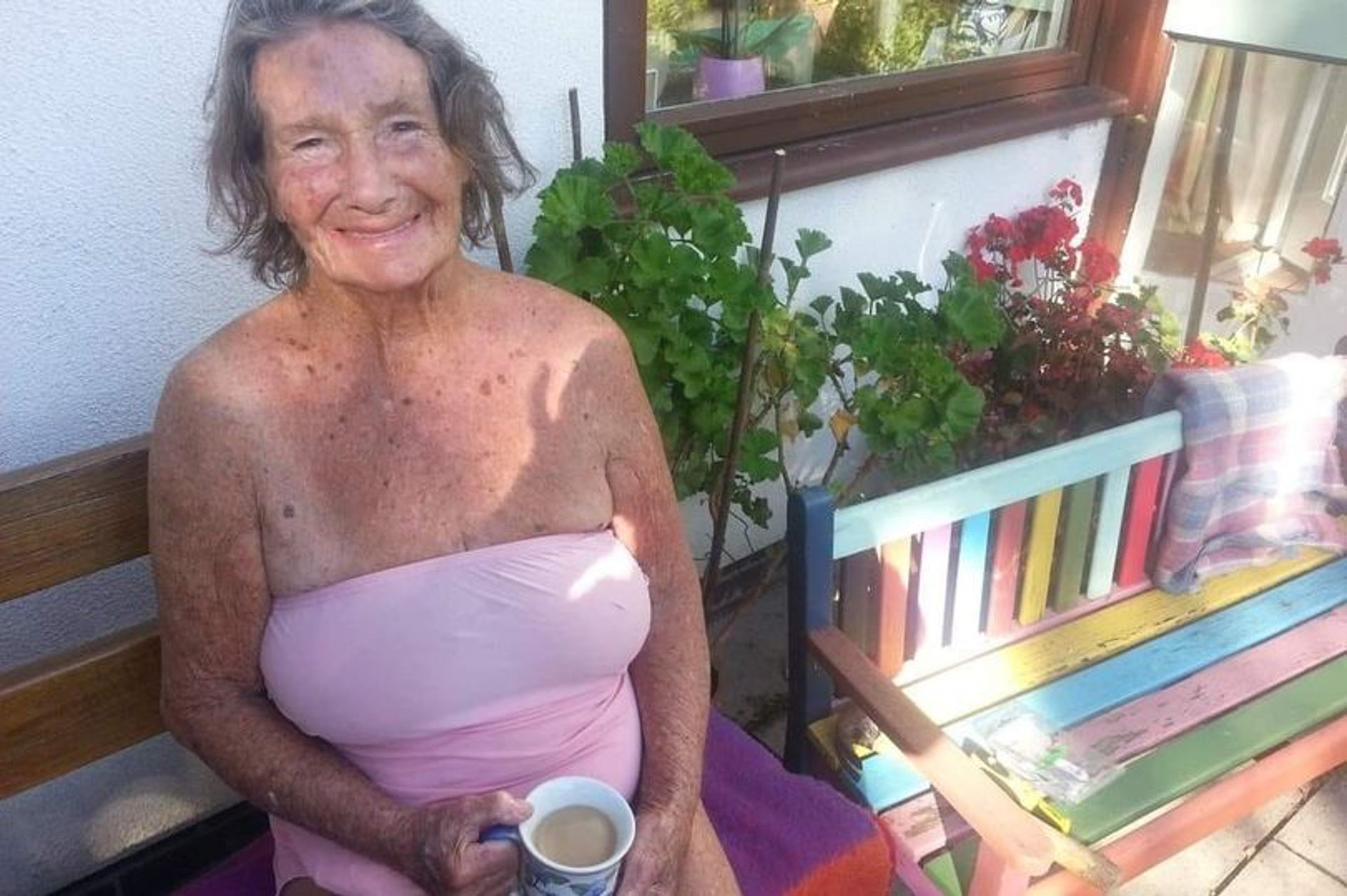 * \: v6 q3 ~, r4 \英國91歲老婦布列絲,2015年瞞着子女偷偷與比她年輕24歲的男子福蘭登記結婚,5個月後逝世。(facebook圖片)