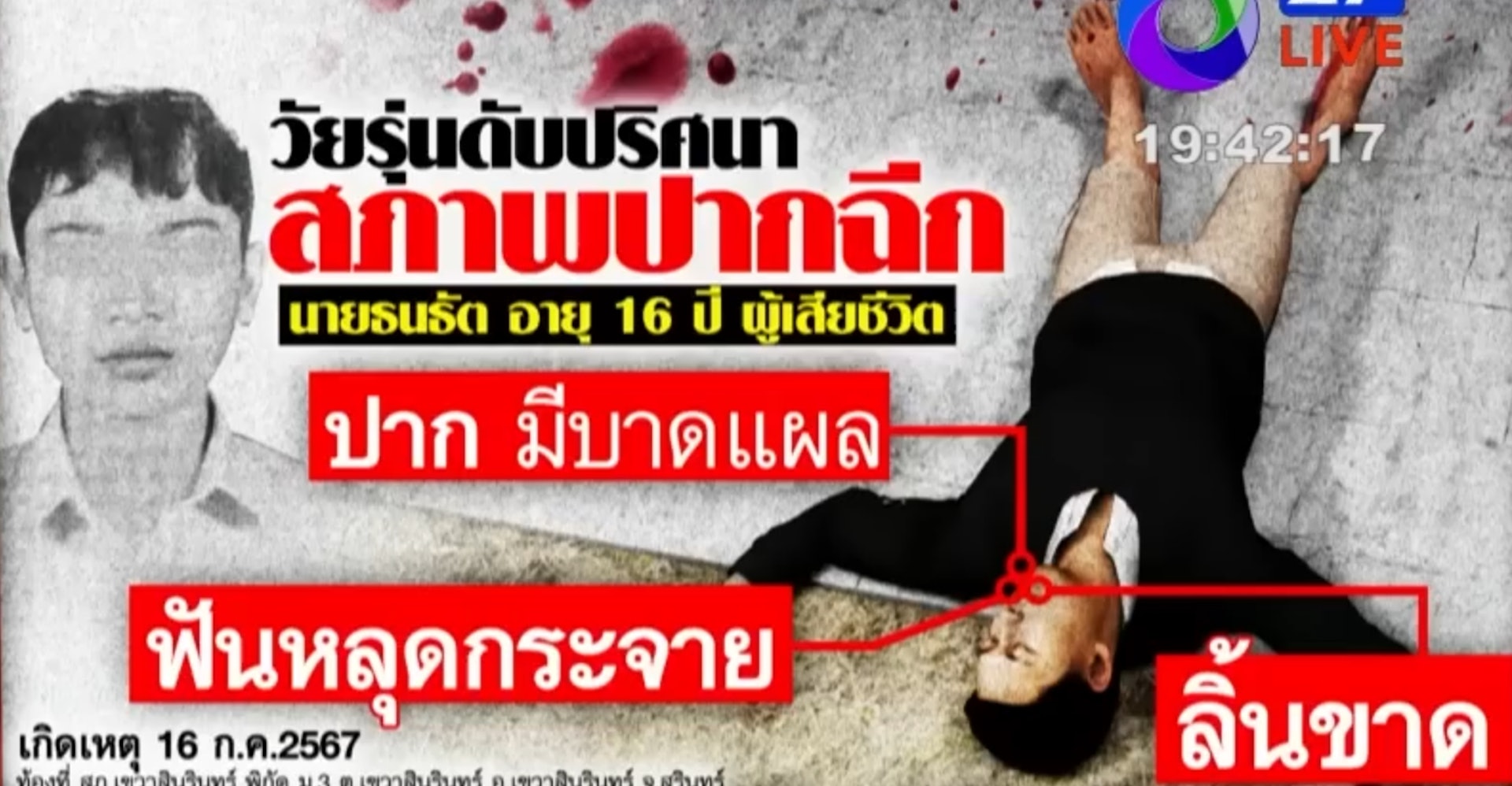 泰國一名16歲少年到朋友家時,竟趁朋友不注意的時候,在院子自製「土製炸彈」。不料,炸彈一個不小心突然爆炸,朋友前往查看時,少年身體已血肉模糊,肉塊四散各地,舌頭被炸斷掉在一旁,屍體周邊還散落着牙齒。(siamrath.co.th)