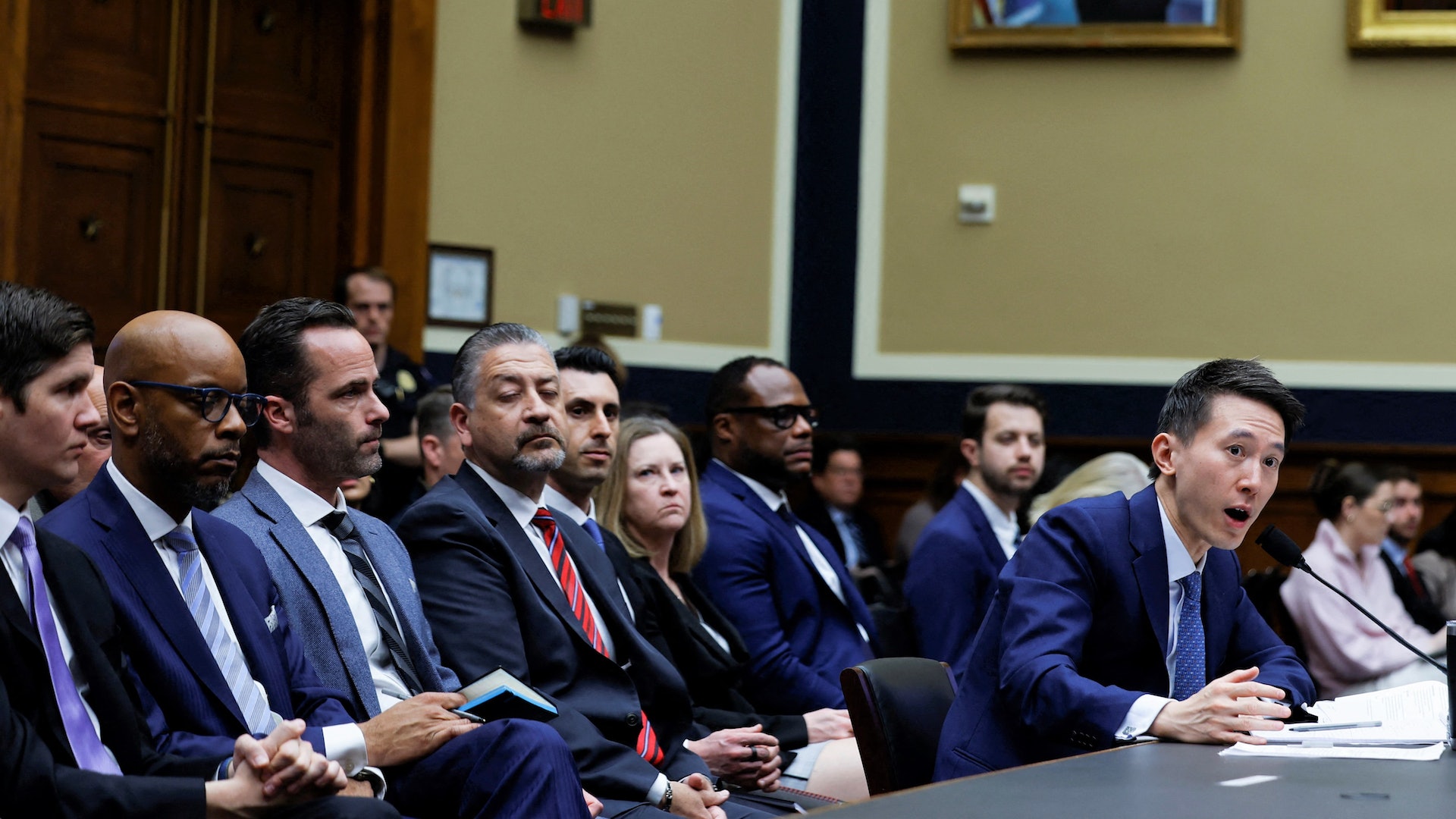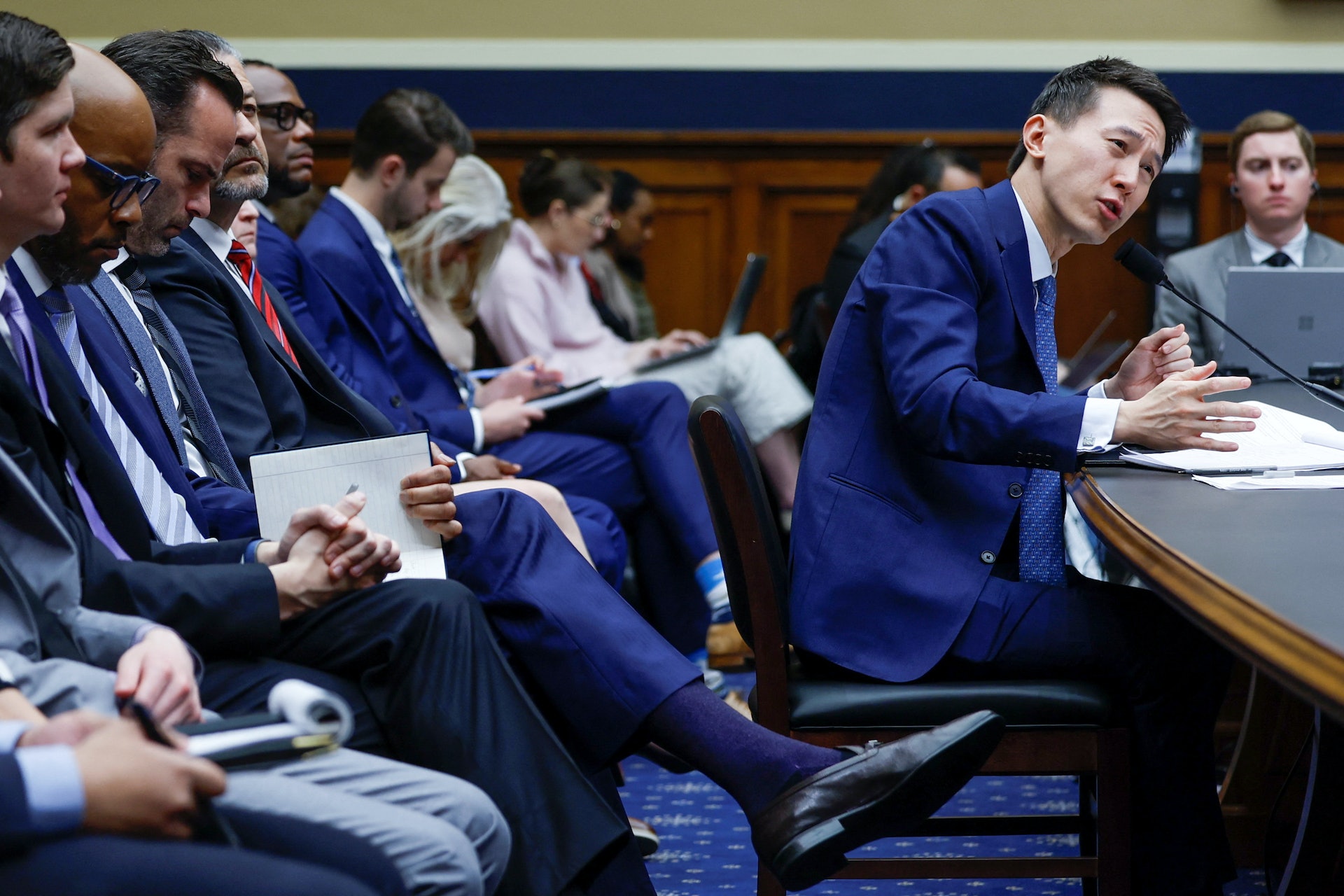 圖為TikTok行政總裁周受資3月23日出席美國眾議院能源和商務委員會聽證會。(Reuters)