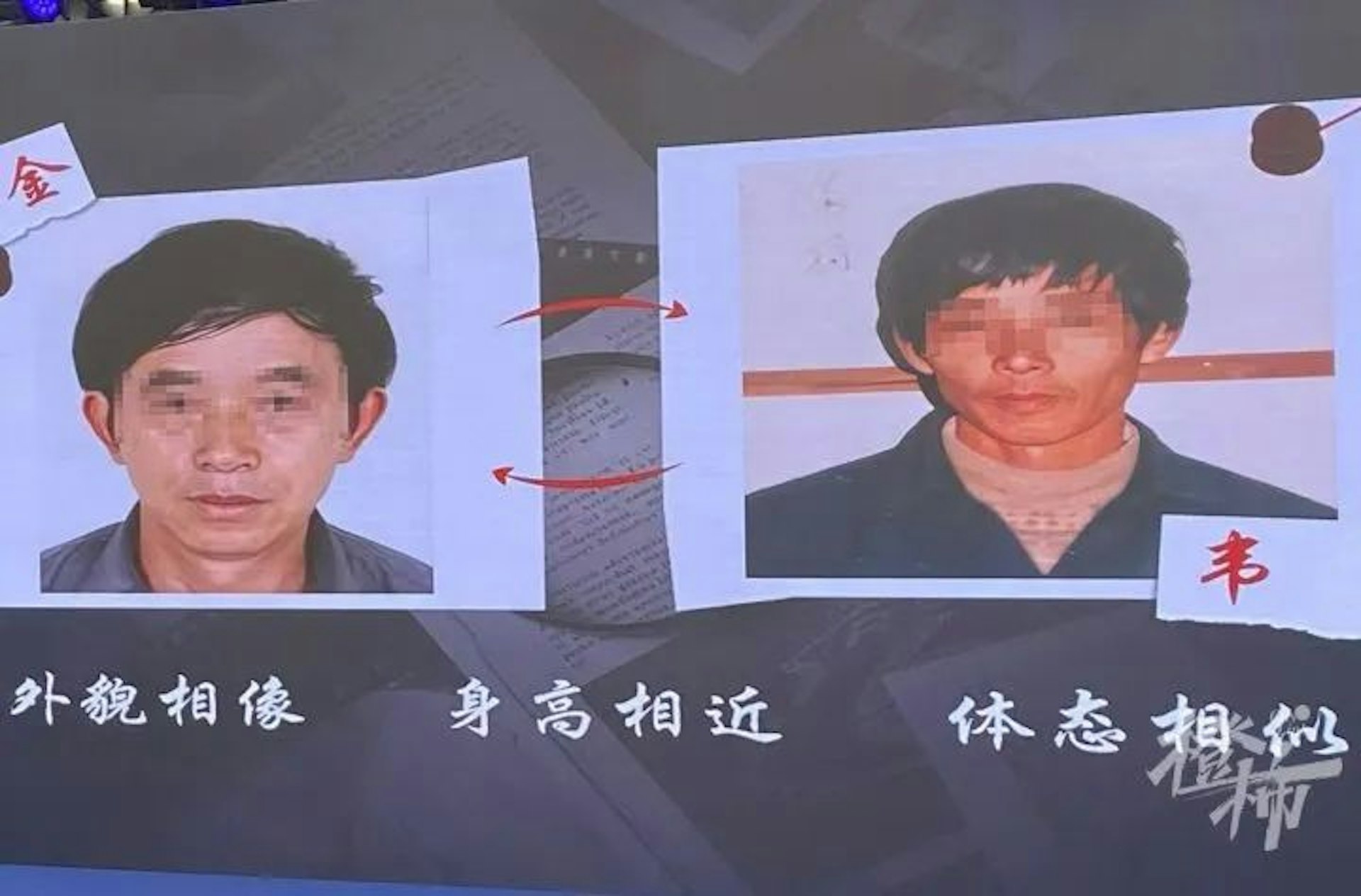 對於受害者死前為何指認兇手是「為正」,經調取韋正及王某金案發當年照片,承辦檢察官發現兩人面貌相似,身高和體態相近。而案發當晚室內昏暗,被害人視線不清,突遇暴力襲擊的情況下,極有可能將王某金認成比較熟悉的韋正。, Q! P! J7 N% h4 f3 B( Z: T+ z7 p: P