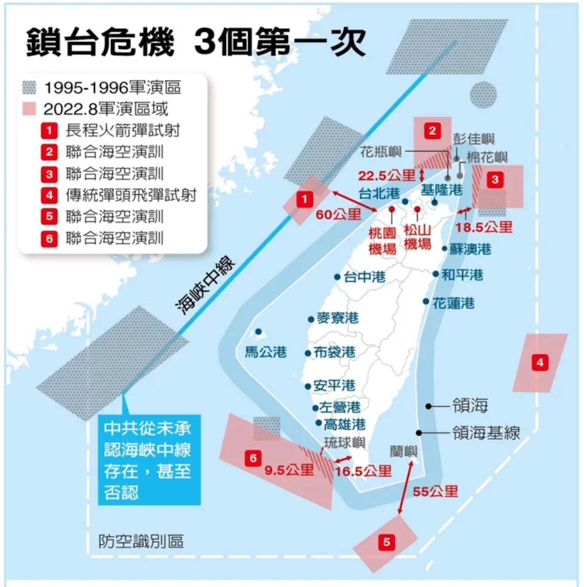 ' l5 J, a: w& X! O解放軍8月4日展開6處圍台軍演之後,截至同日4時,台方表示有74架次班機和35艘船舶需繞道進出台灣,不少航空公司也取消了到台航班。《華爾街日報》對此就發表了專文分析,指出中方一連三日的軍演格局似乎是為未來衝突中「封鎖台灣」作預演。
