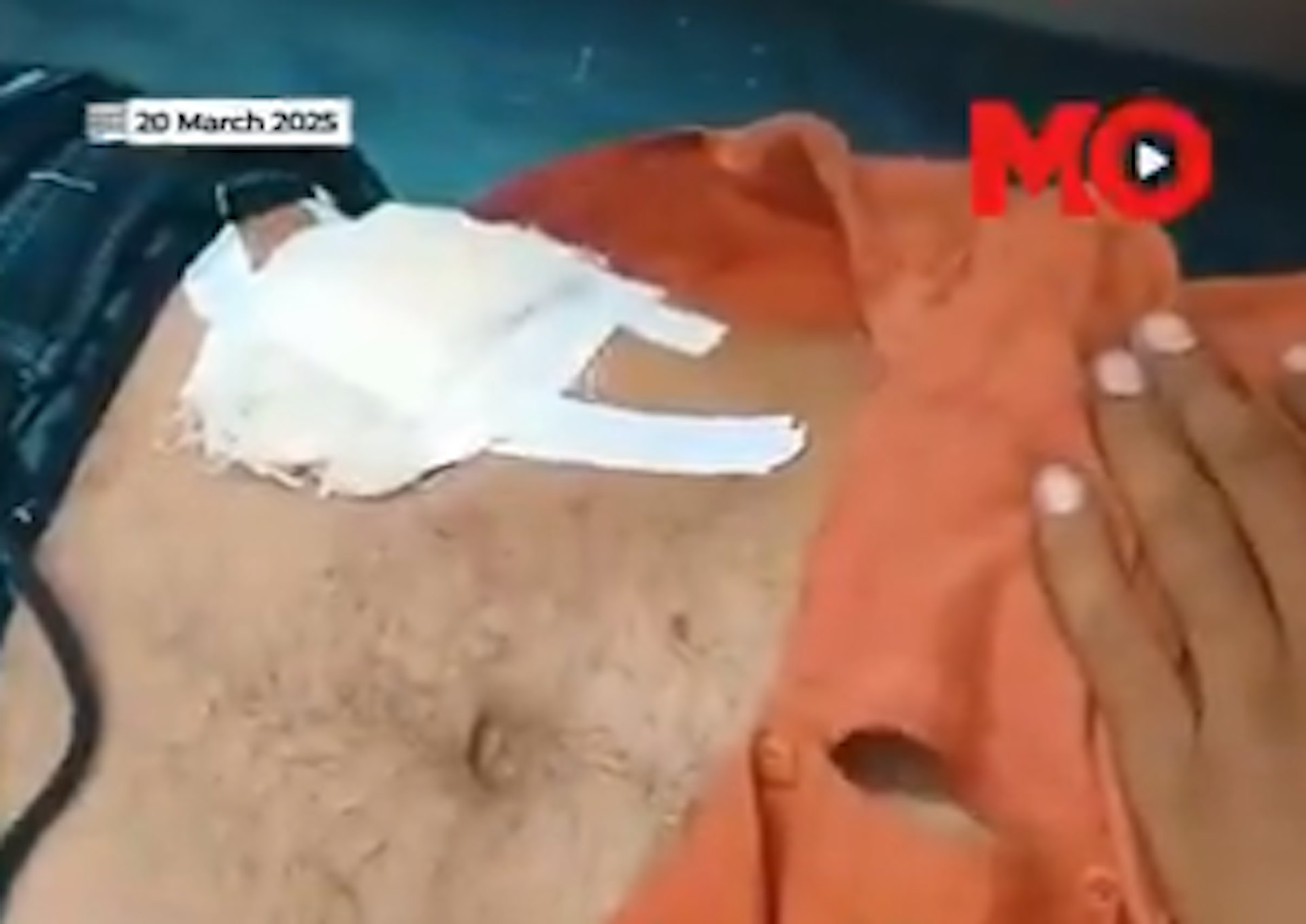 拉加自行開肚及縫合傷口,出現感染而送院治理。(影片截圖)* w1 L3 L2 p5 B0 v$ N4 Q2 O" |