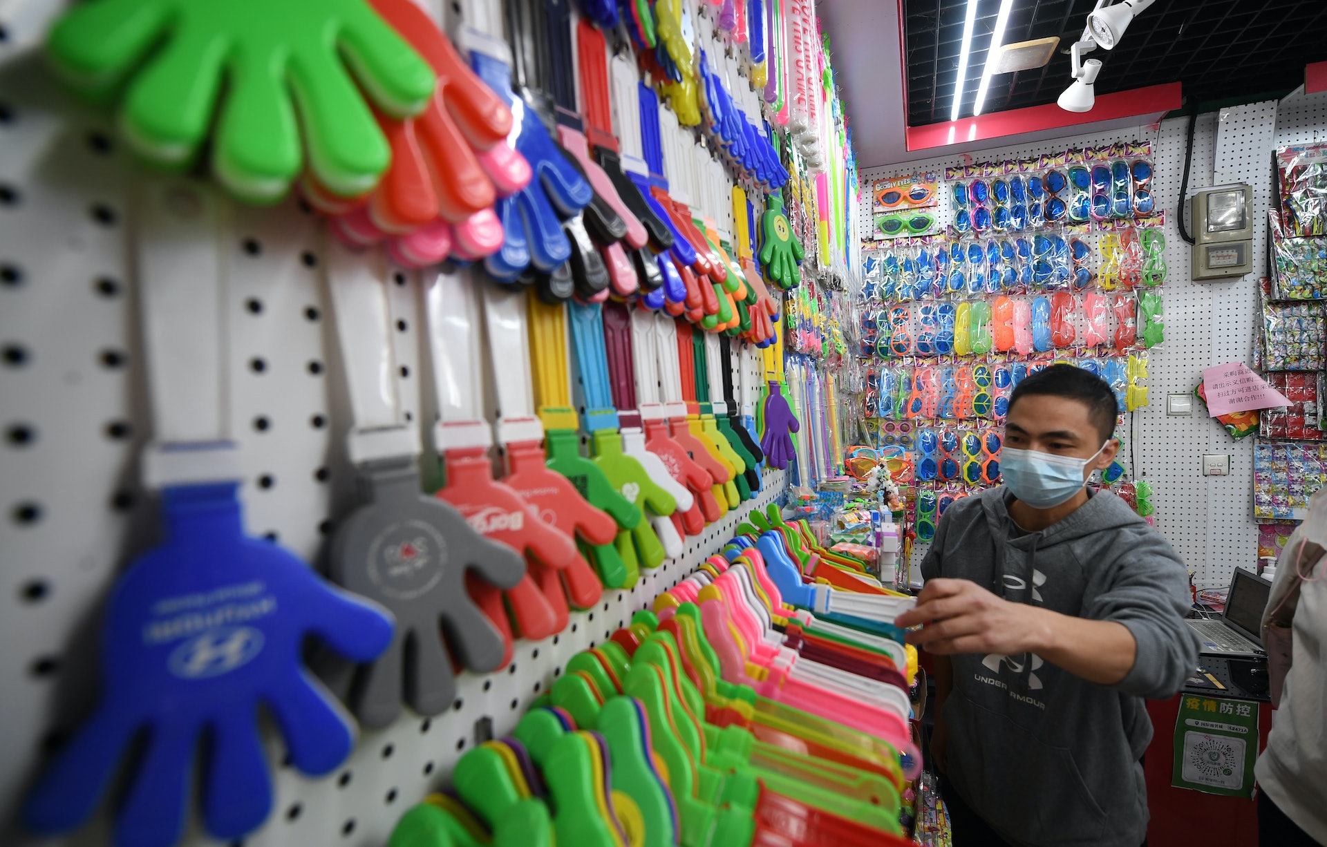 ! r9 ]9 S6 H7 etvb now,tvbnow,bttvb中國浙江義烏中小企業靠世界盃回暖經濟,訂單增長超100%。(視覺中國)