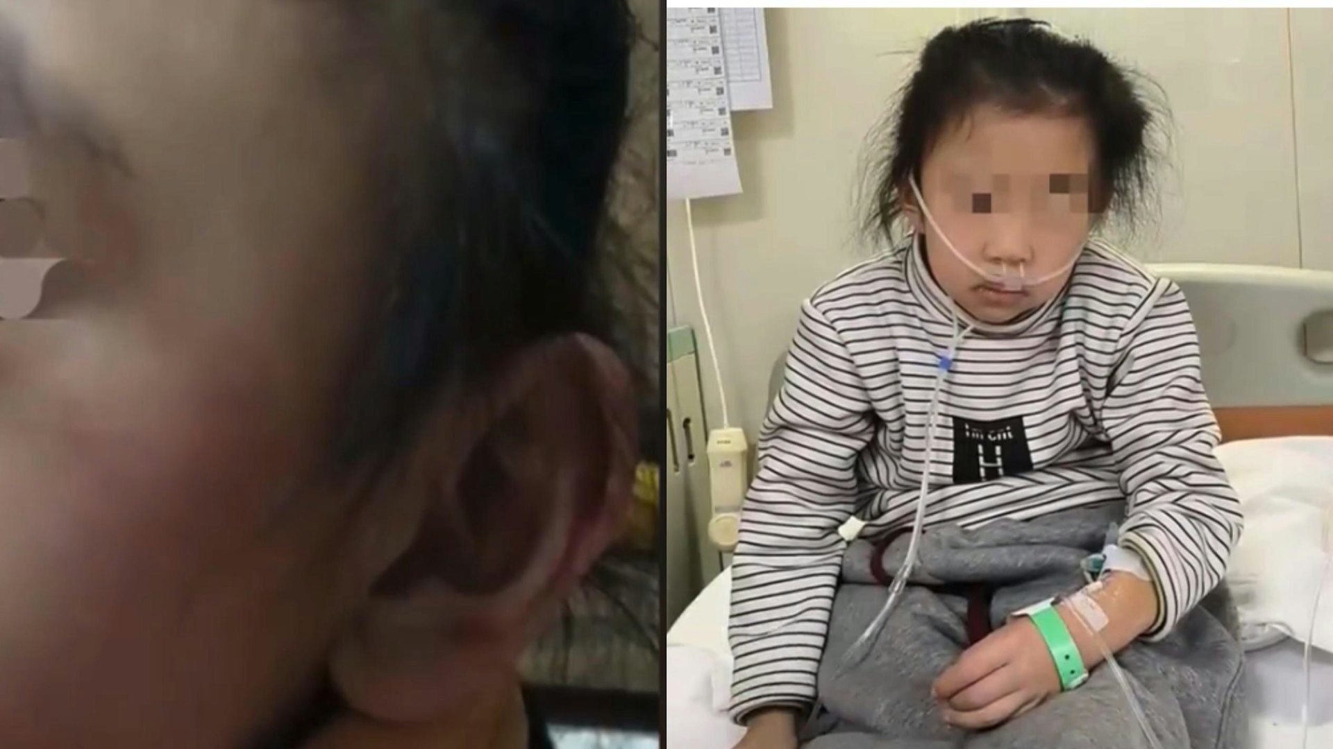 山西7歲女童被老師掌摑致左耳失聰。(影片截圖)