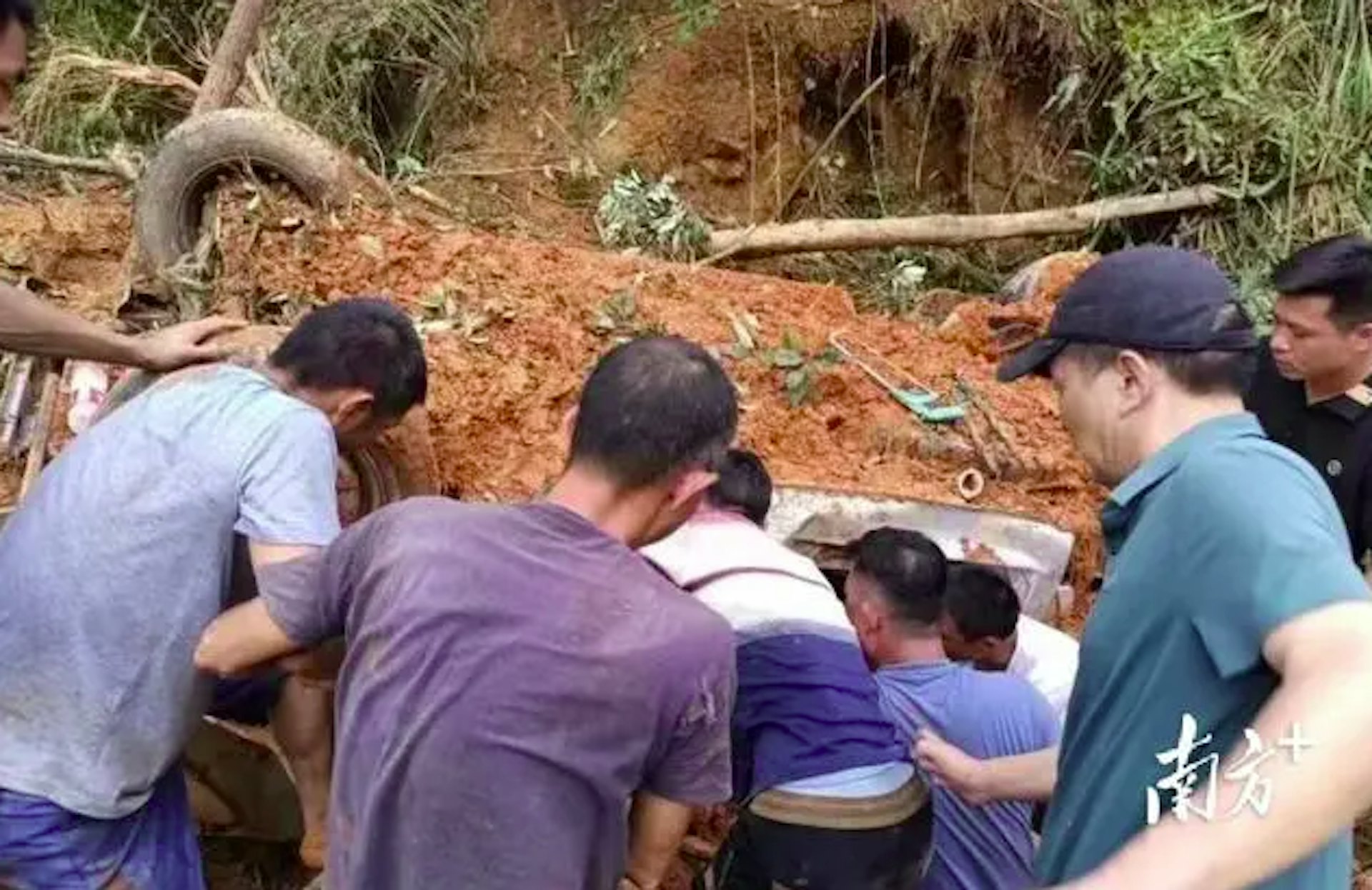 梅州一名貨車司機,駕駛途中突遇山體滑坡,在被埋27小時後獲救。(南方+)公仔箱論壇) ~2 T- G, o, x