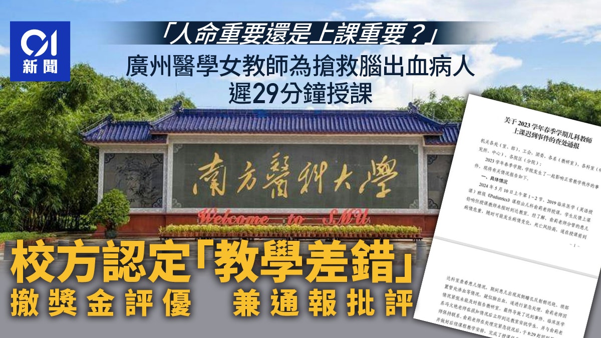 % `" N4 Y# E2 k& QTVBNOW 含有熱門話題,最新最快電視,軟體,遊戲,電影,動漫及日常生活及興趣交流等資訊。廣州市南方醫科大學一名女教師今年5月因在醫院搶救疑腦出血病人,而遲到29分鐘上堂授課,結果遭校方認定為教學差錯,不僅被處罰扣發2000元(人民幣,下同)的5月獎金,還被全校通報批評、取消年度考評評優評先資格。TVBNOW 含有熱門話題,最新最快電視,軟體,遊戲,電影,動漫及日常生活及興趣交流等資訊。0 n4 t3 V$ G' Z; F) Q1 K