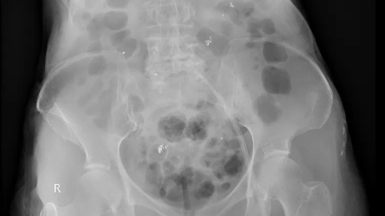 腹平片可以看到患者消化道內殘留大量汞。(南方都市報)