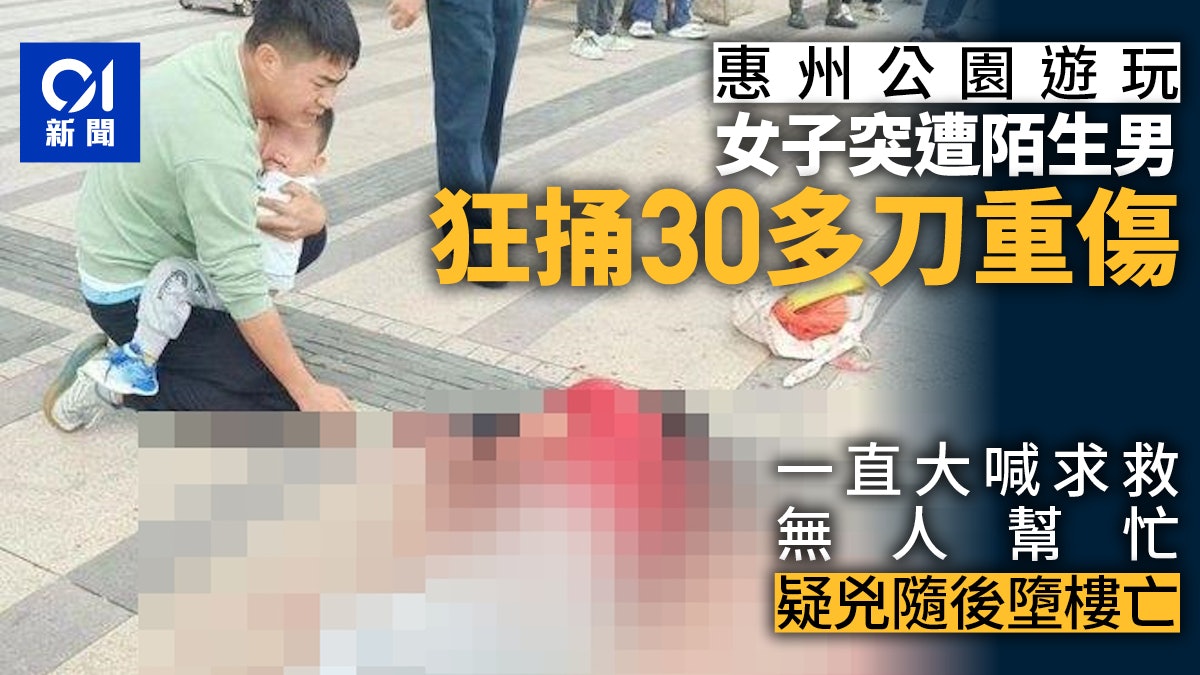 廣東省惠州市一名女子早前在公園遊玩期間,在公園保安室附近被陌生人無緣無故用剪刀連刺30多刀捅成重傷,捅人者隨後跳樓自殺。TVBNOW 含有熱門話題,最新最快電視,軟體,遊戲,電影,動漫及日常生活及興趣交流等資訊。8 {4 g$ p5 L+ \, X; X