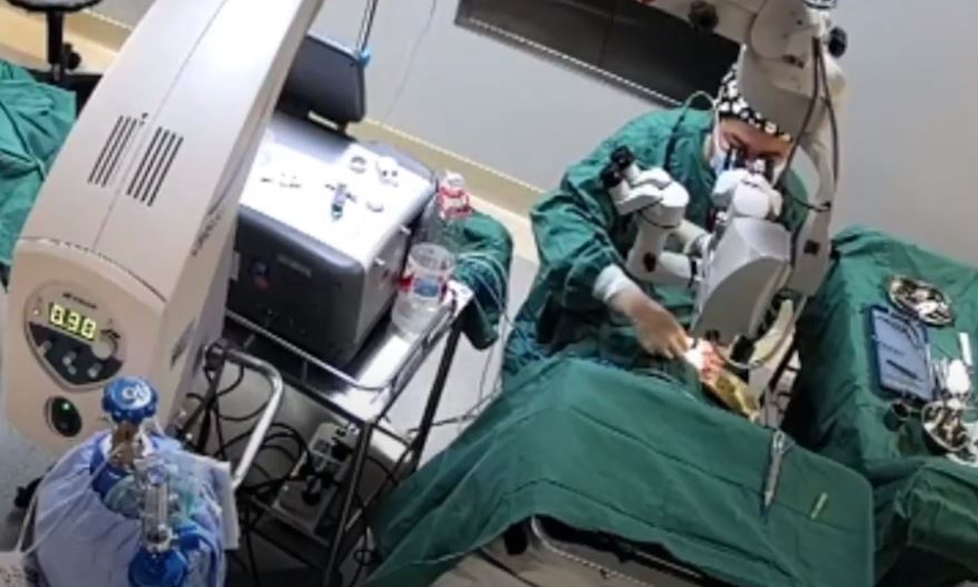 隨後另一位醫護人員過來幫忙按住患者身體,手術則繼續進行。(影片截圖)