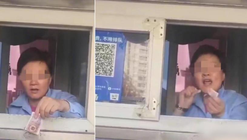收費員一邊說一邊將5角紙幣撕爛。
